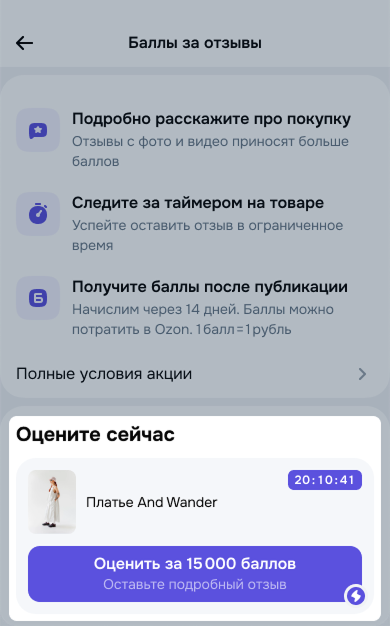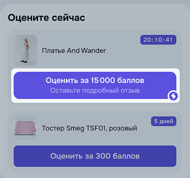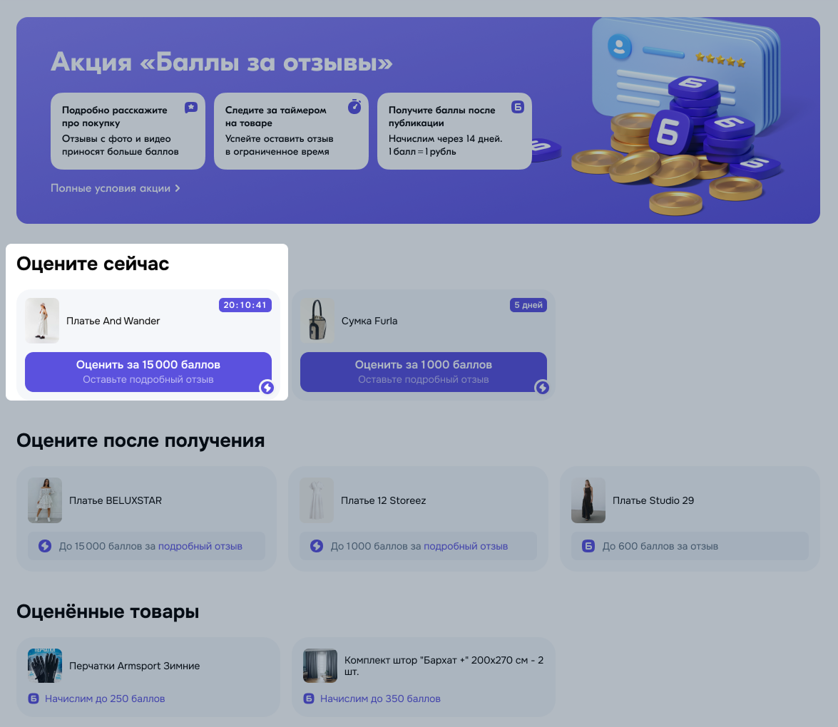 Получить баллы за отзывы можно в течение ограниченного времени — следите за таймером на товаре.