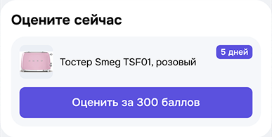 Чтобы поделиться впечатлением о покупке, нажмите Оценить за баллы на сайте или в приложении.