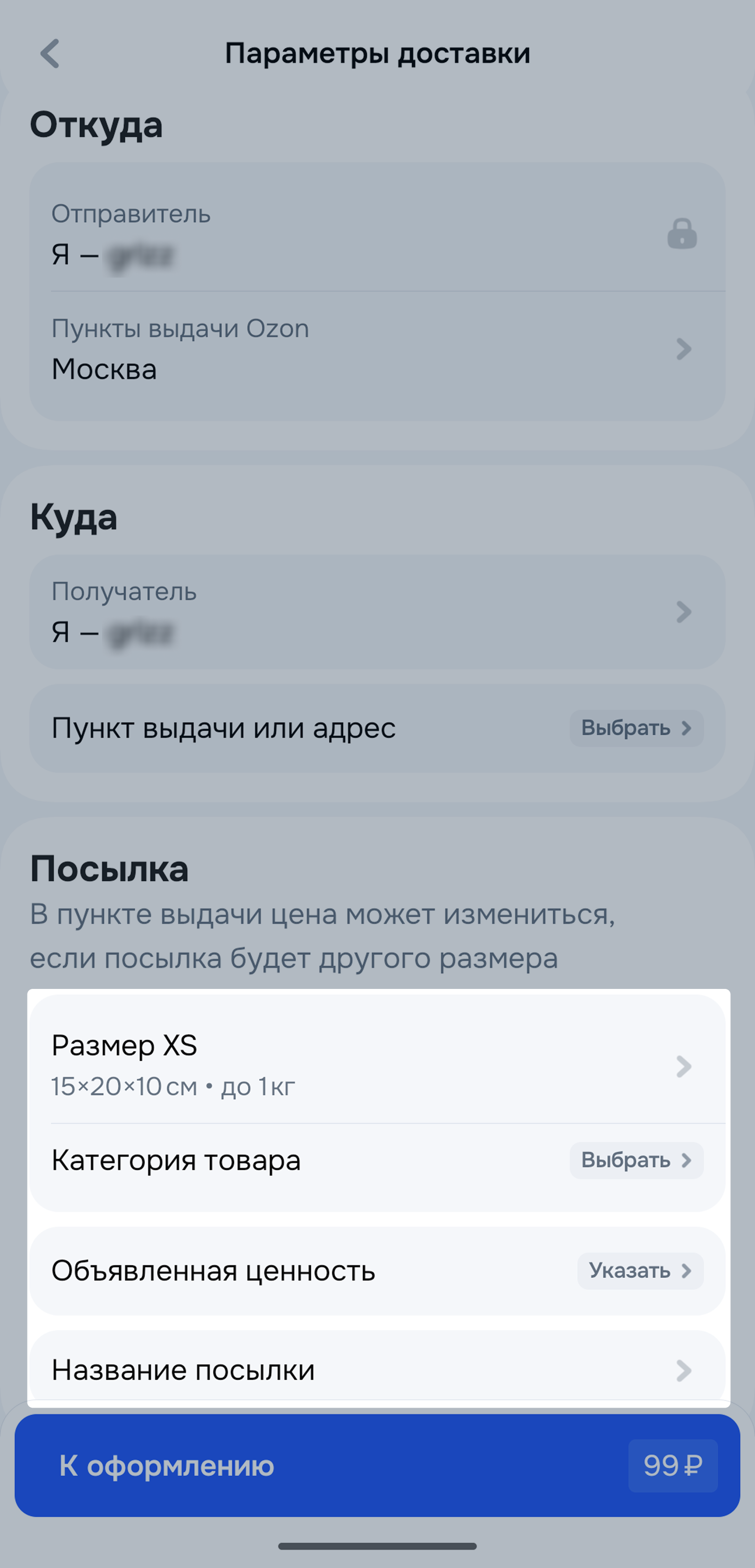 Перед тем, как прийти в пункт выдачи и отдать посылку, в приложении Ozon внесите всю информацию по вашей посылке. Это может сделать отправитель или получатель.