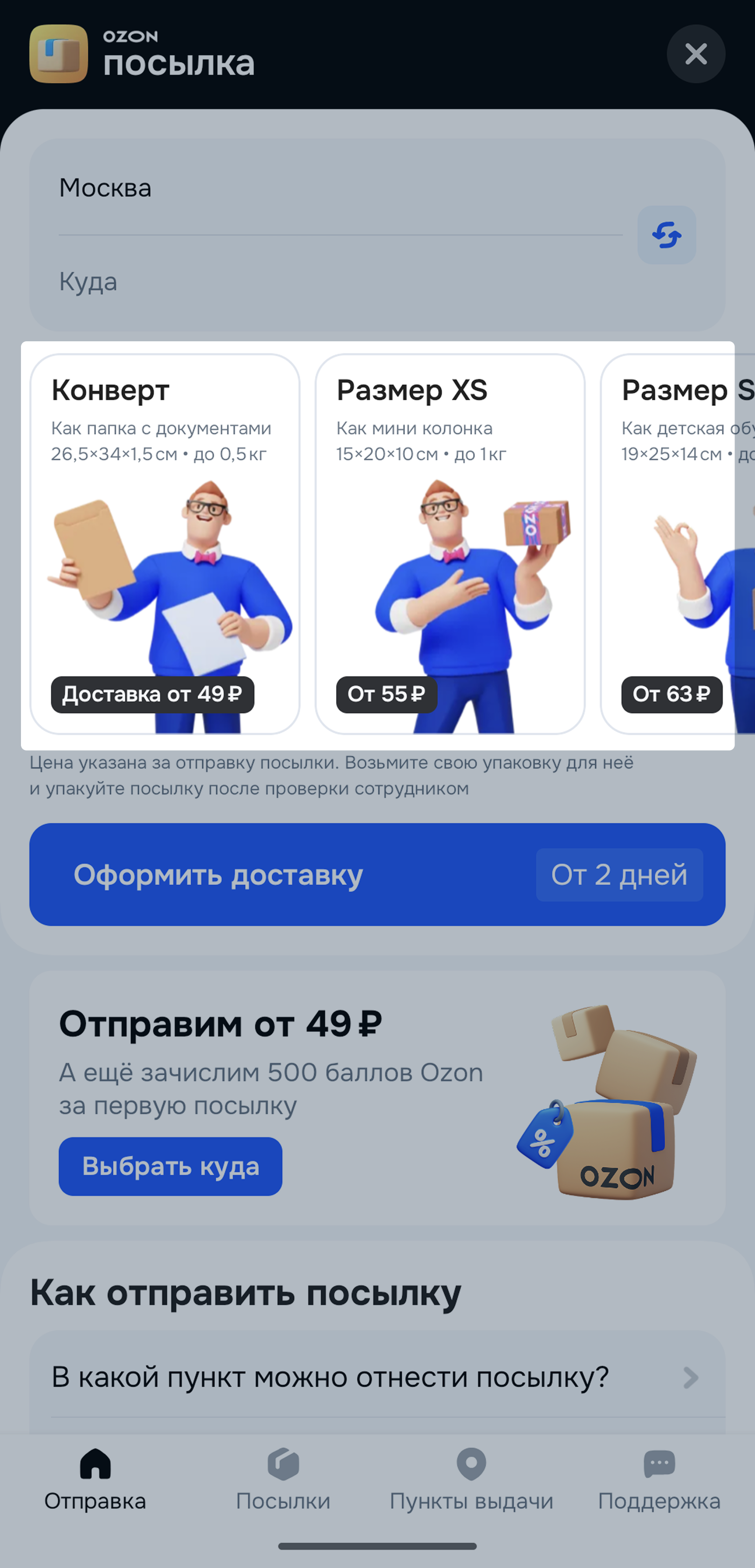 Максимально допустимые габариты посылок указаны в разделе Отправка.