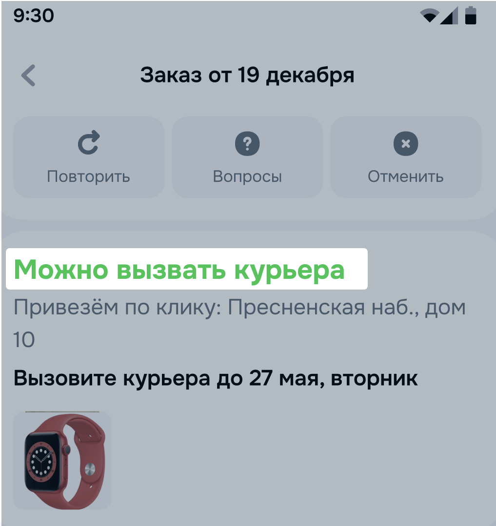 Если вы хотите, чтобы курьер предварительно позвонил вам, выберите Позвонить перед доставкой. Курьер позвонит за 20-60 минут до прибытия.