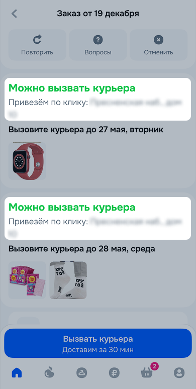 - если вы отказались от услуги, заказ доставят до входа в здание или частный дом;