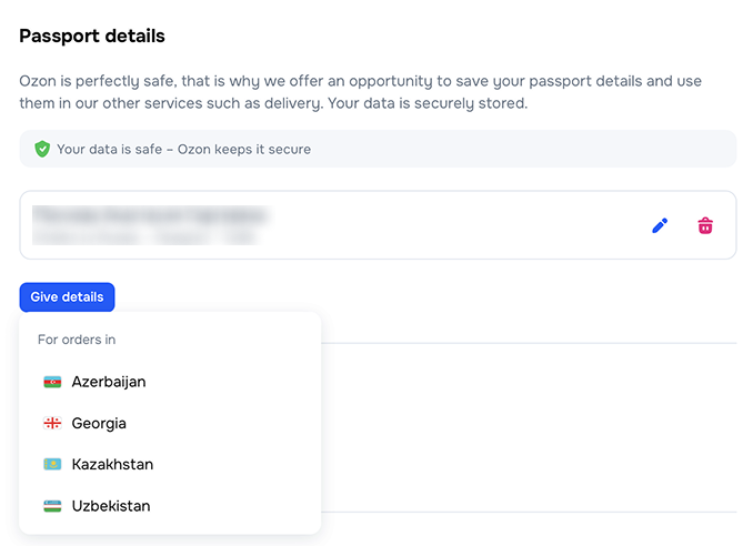 Save personal data via Ozon ID