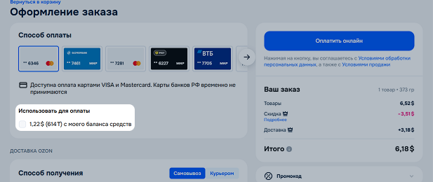 Вы можете оплатить покупку с баланса средств полностью или частично: