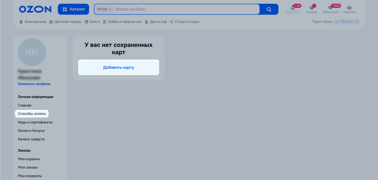 При оформлении заказа в разделе Способ оплаты выберите сохранённую карту или нажмите Новой картой.