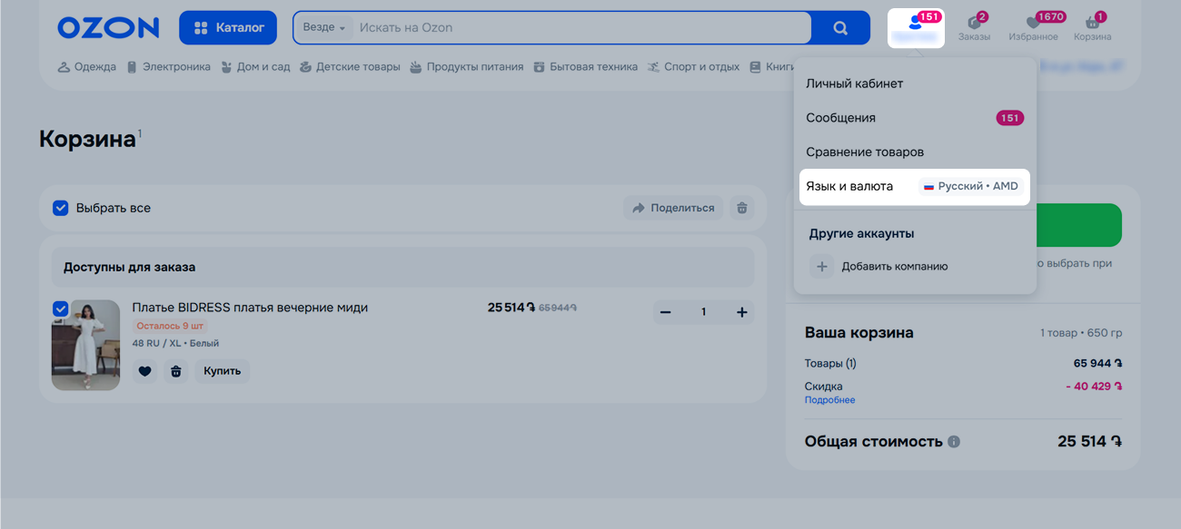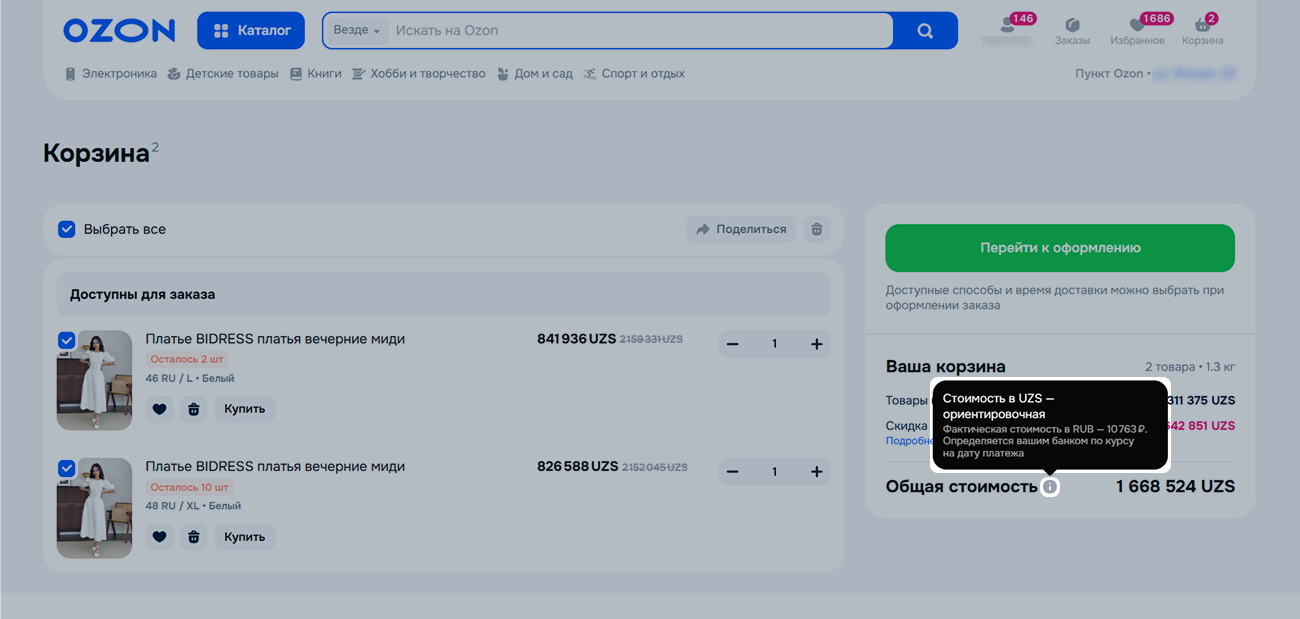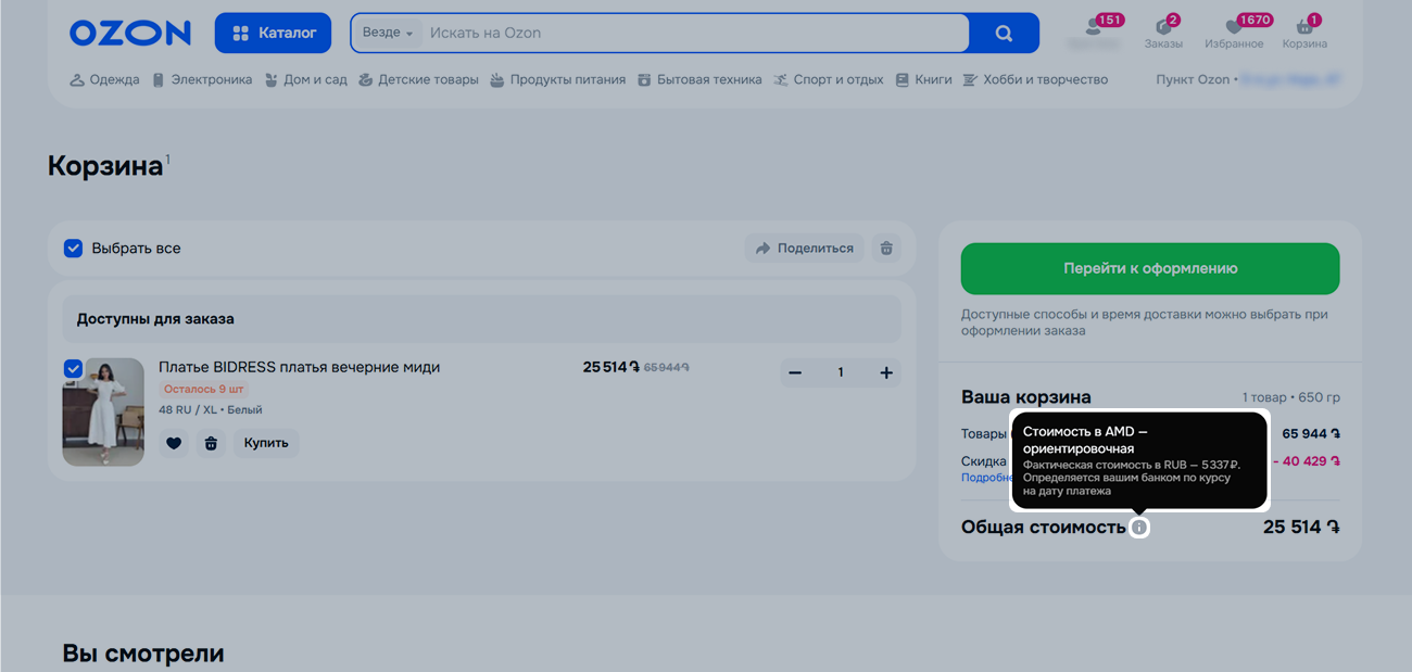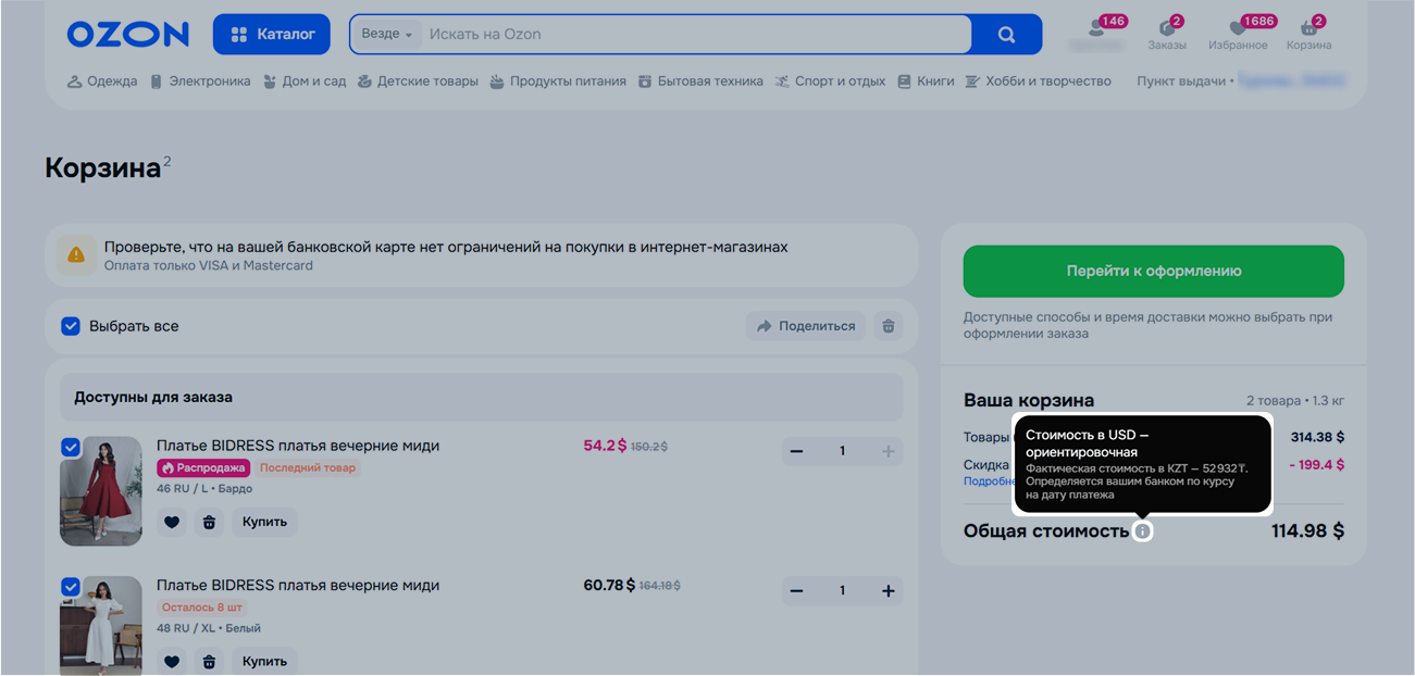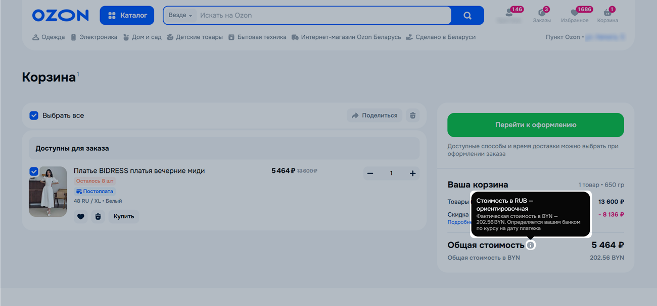 Картой «Халва» можно оплатить только товары из корзины Ozon Беларусь.