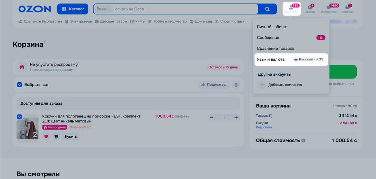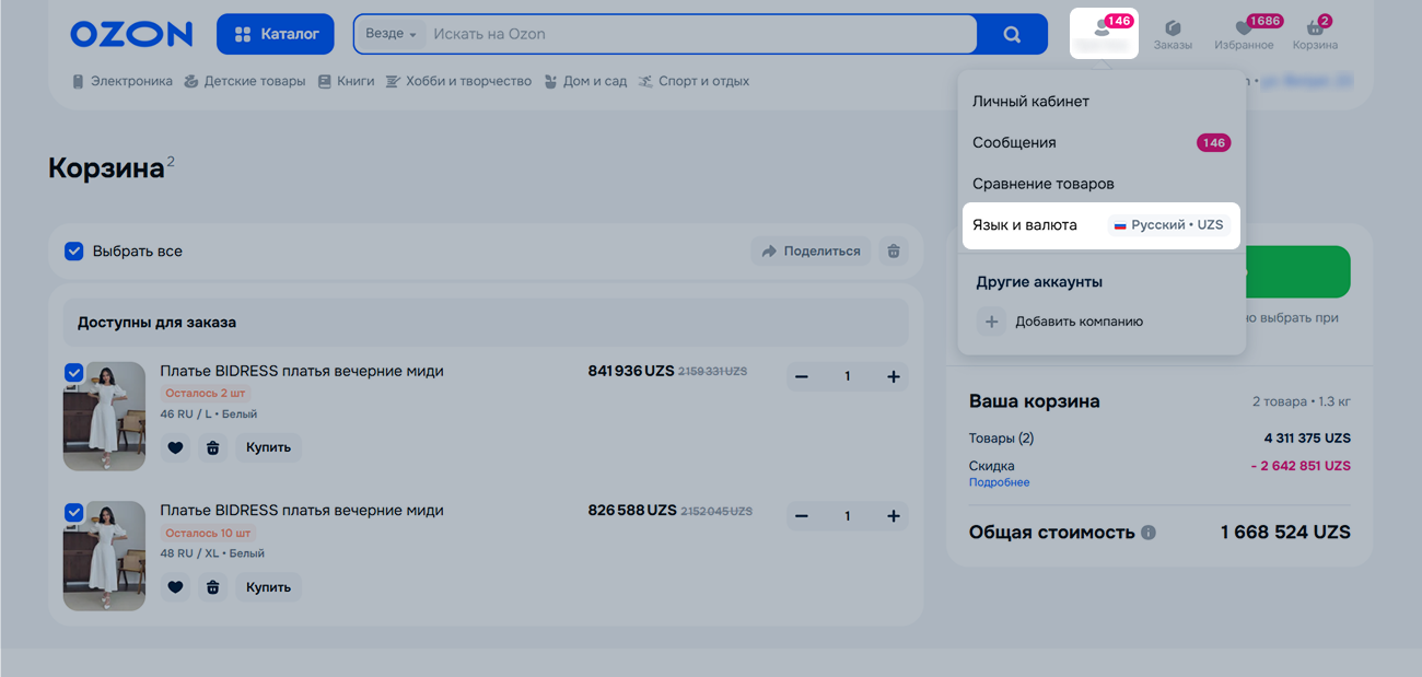 → Язык и валюта и выберите валюту «Узбекский сум».
