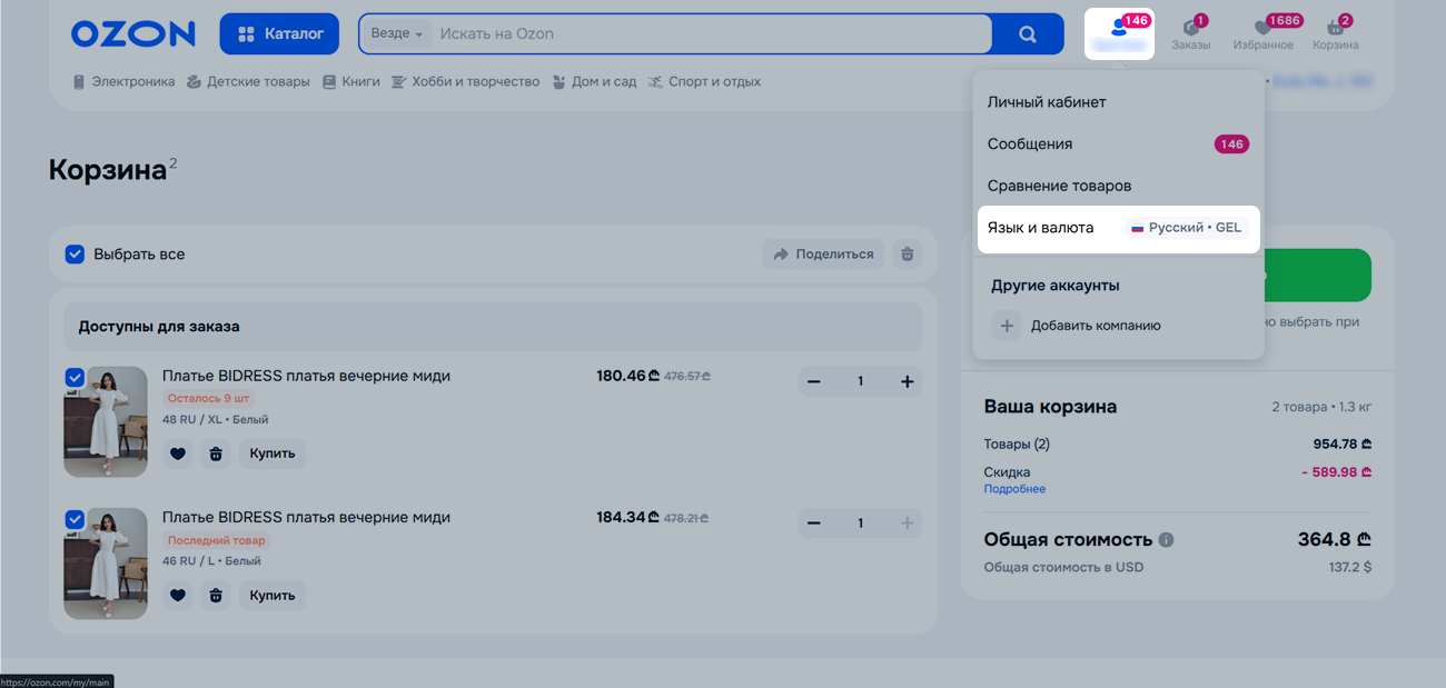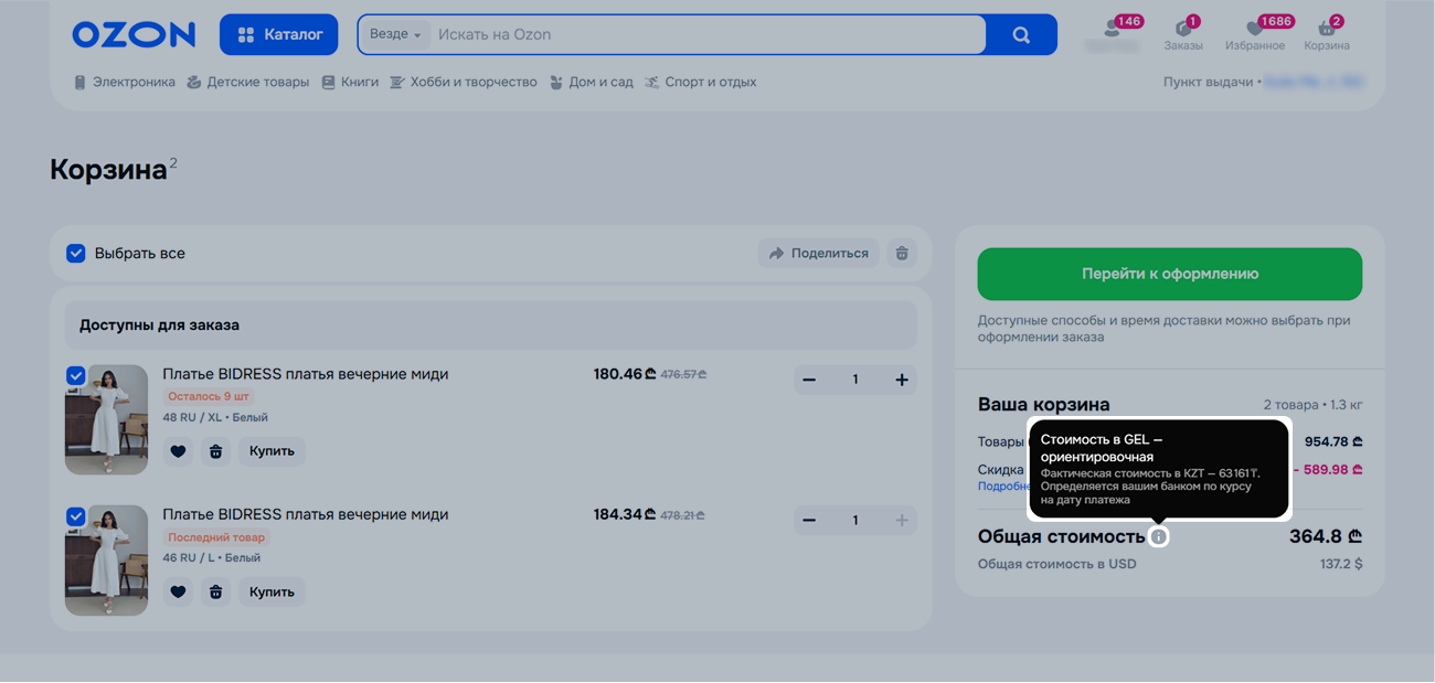 Чтобы посмотреть стоимость заказа в справочной валюте, нажмите