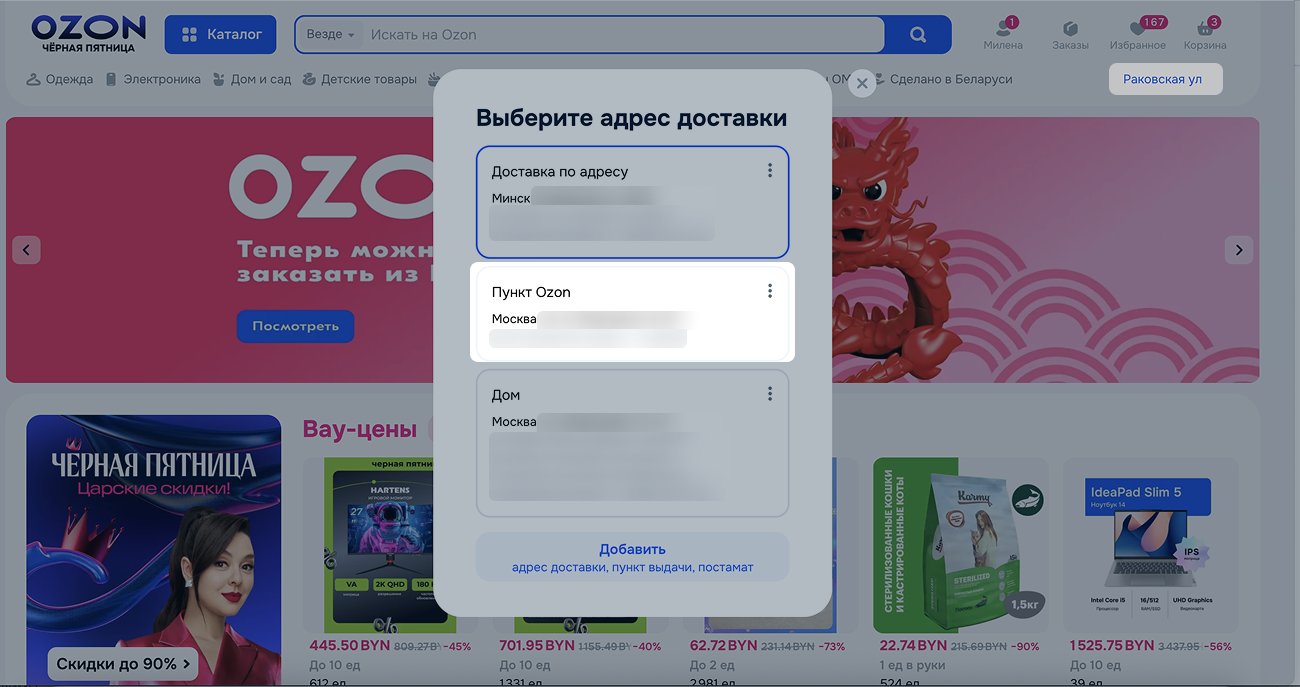 - Укажите адрес доставки в Беларуси.