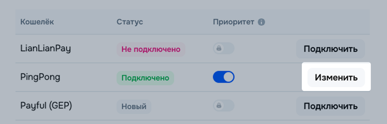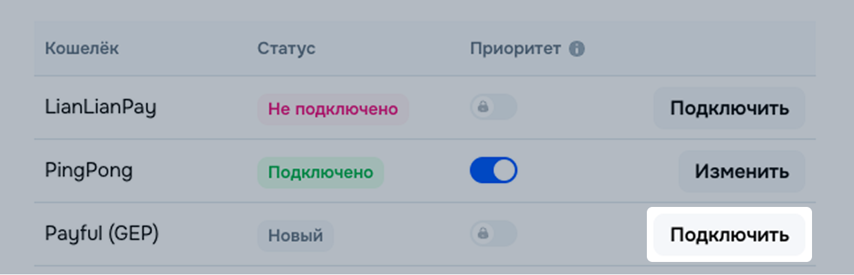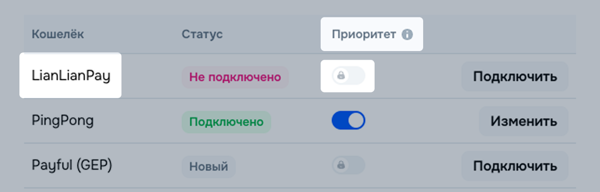 При подключении нескольких платёжных систем вы можете выбрать приоритетную, на которую будут поступать выплаты. Приоритет может быть только один, но его можно менять в любое время неограниченное число раз.