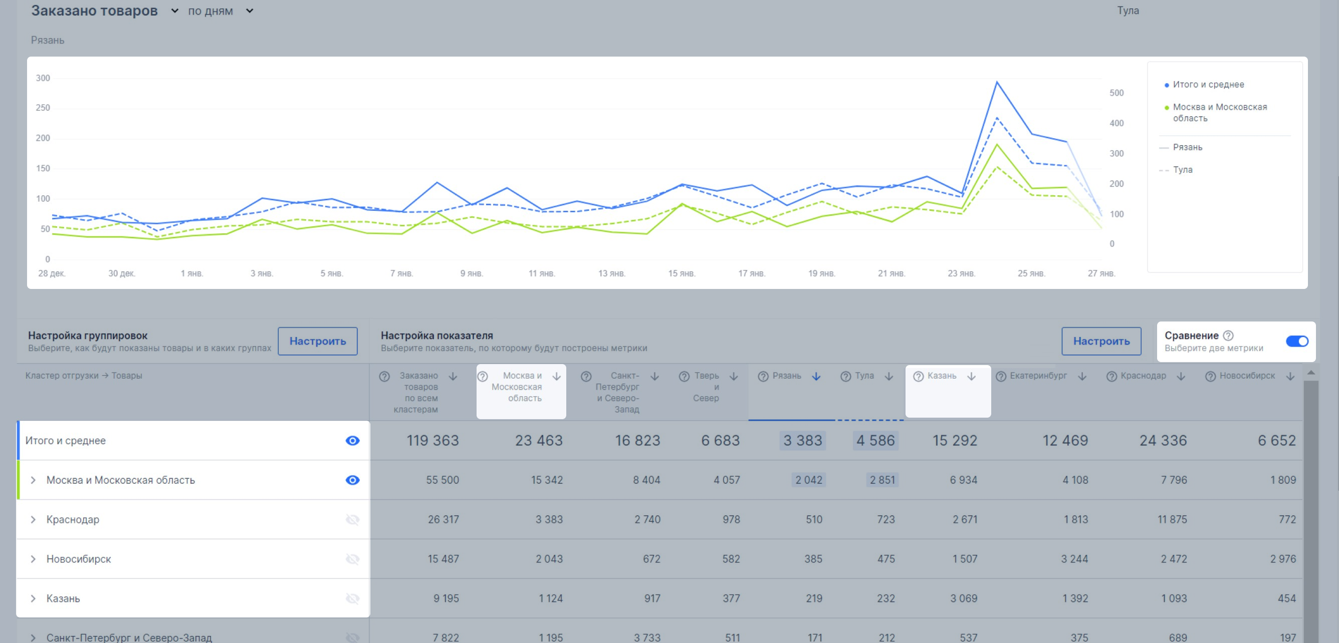 Аналитика по кластерам поможет проанализировать географию спроса на ваши товары. Она будет полезна:
