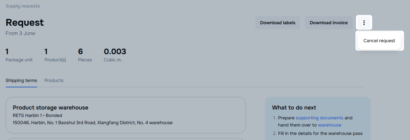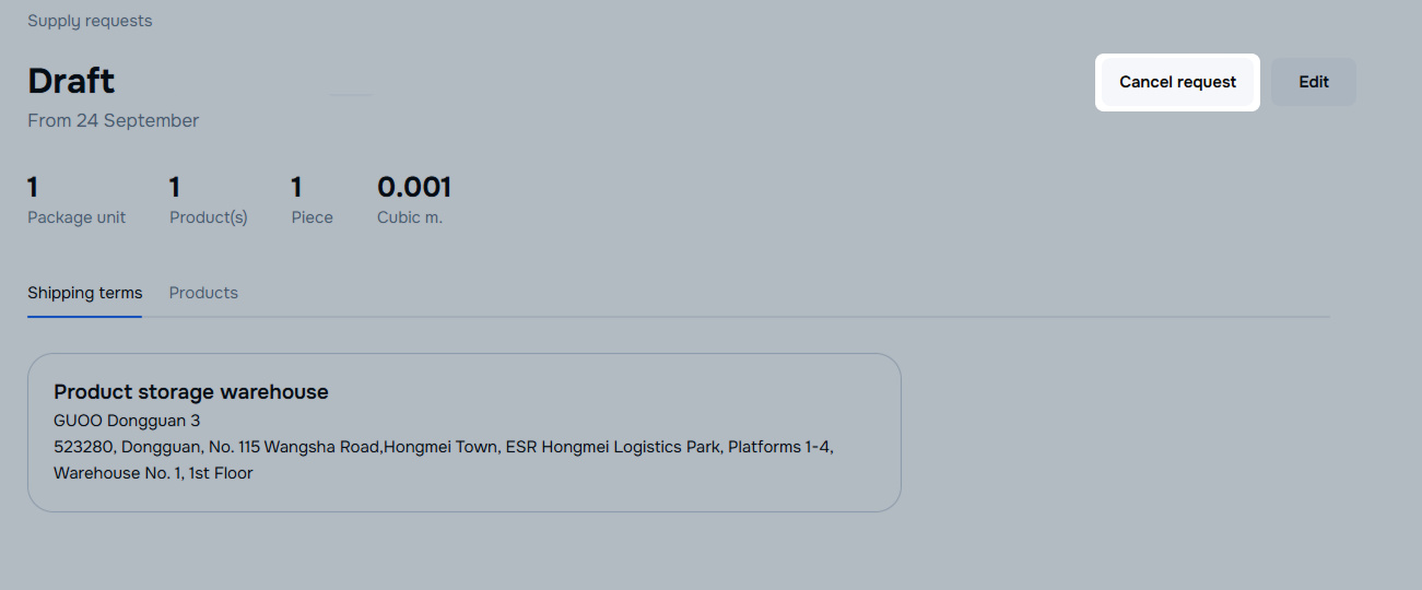 In the request row, click -> Cancel request.