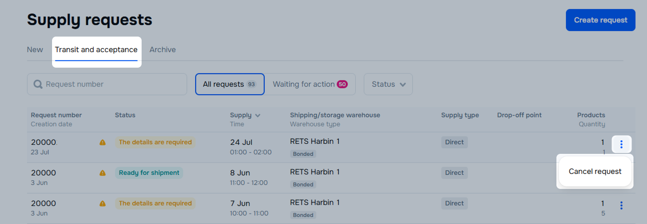 You can cancel requests with the following statuses: