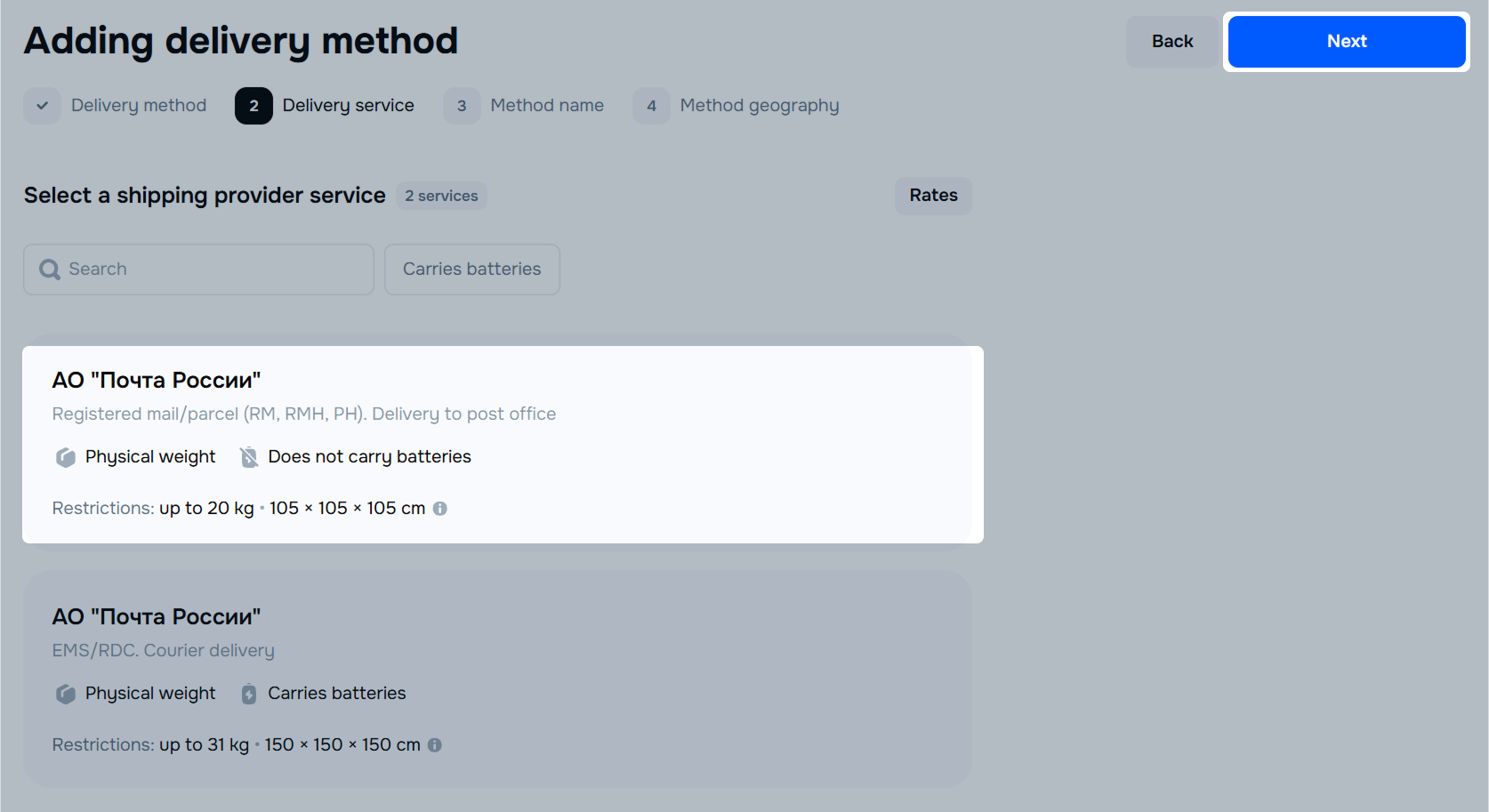 You can add delivery methods in any country, except Georgia and CIS countries: this requires a separate account. Previously created delivery methods for Georgia and CIS countries are archived.