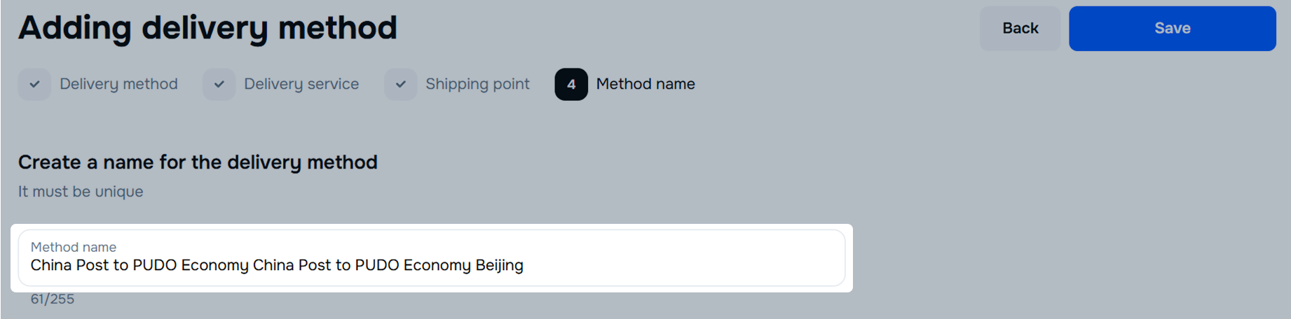 Enter a name for the method or use the automatically generated one. Maximum length is 255 characters.