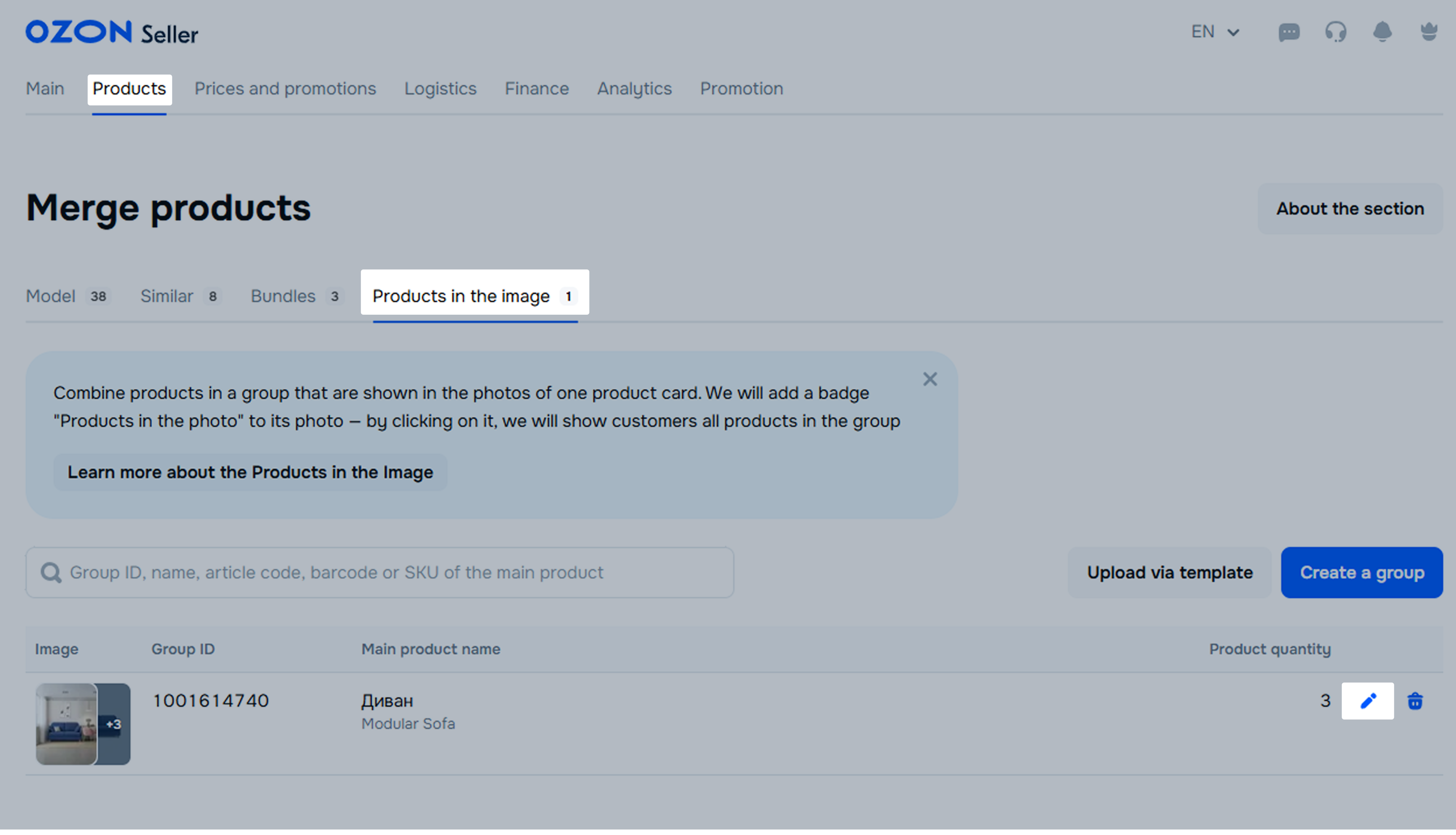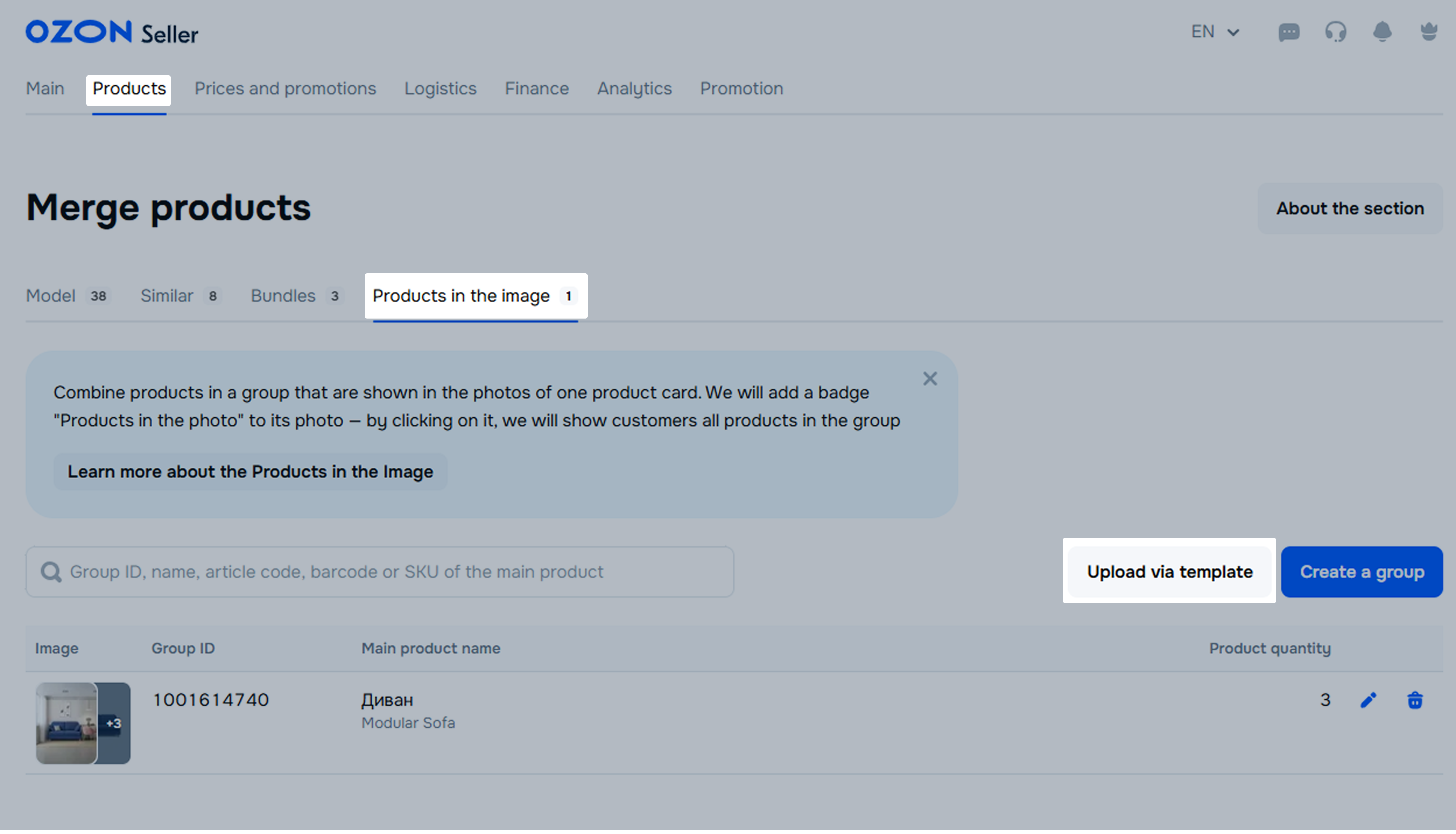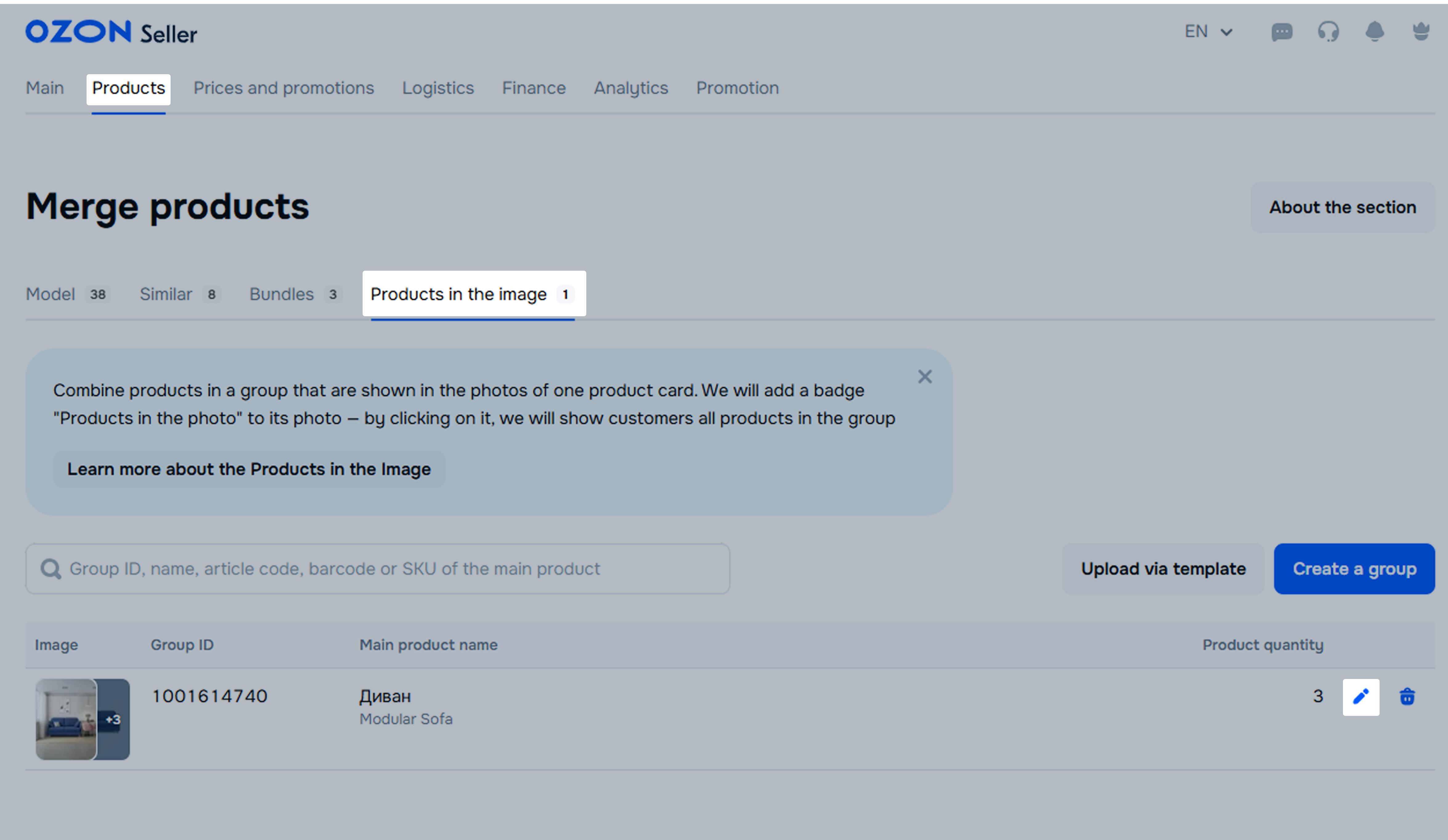 Confirm the selection. Once you save the group, you can’t change the main product.