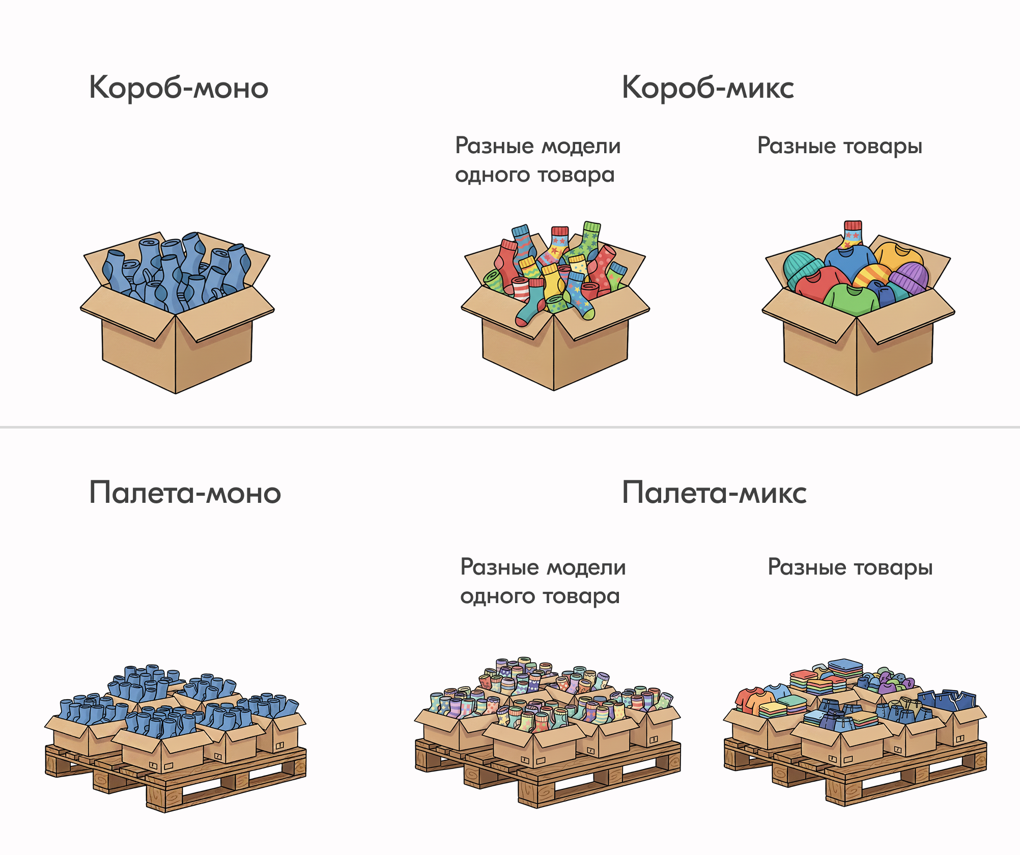 Если вы добавите разные модели одного товара в грузоместо, например, отличающиеся по цвету или размеру, система определит его как «микс».