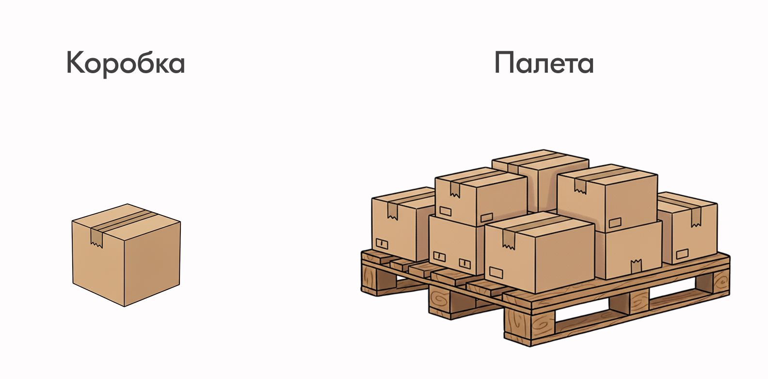 Для прямых поставок можно указать только общее количество грузомест — этикетки подойдут для палет и коробок. При поставках кросс-докингом укажите количество палет и коробок отдельно.