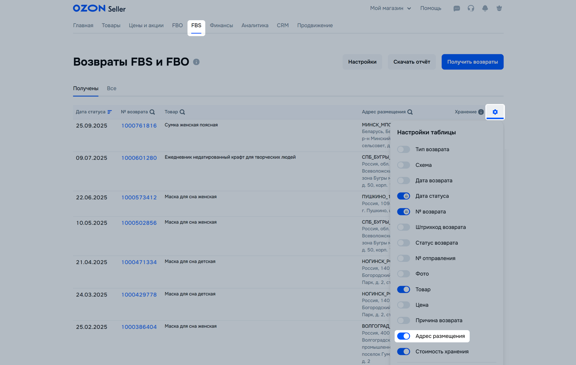 Чтобы узнать, куда вернётся каждый товар — на ваш склад или на склад Ozon:
