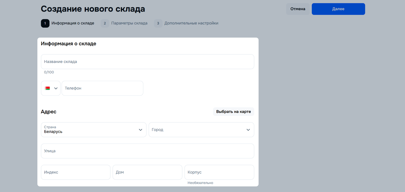 Вы можете создать склады в любой стране, кроме Грузии и стран СНГ — для них потребуется отдельный личный кабинет и отдельная бизнес-лицензия. Созданные ранее склады для Грузии и стран СНГ были перенесены в архив.