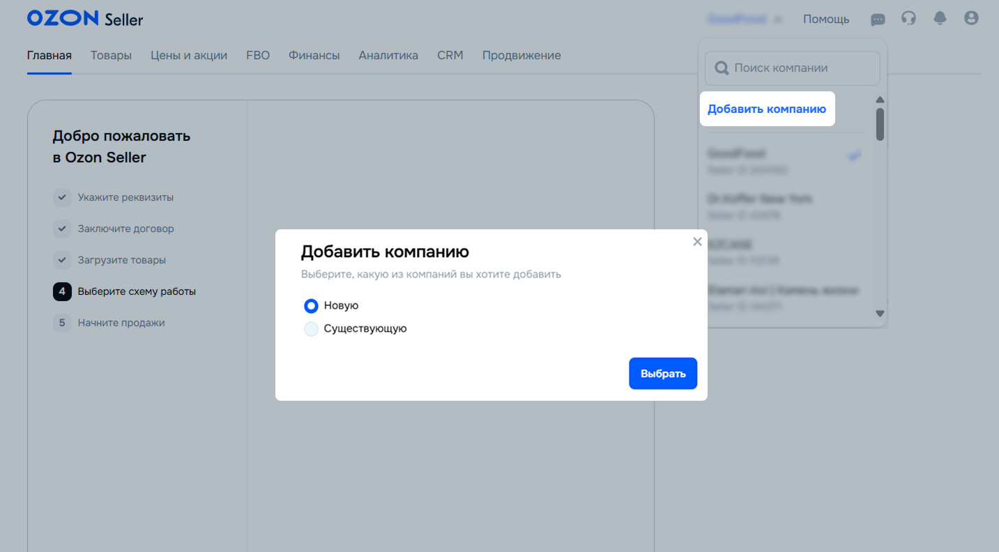 Авторизуйтесь или зарегистрируйтесь на платформе Payful (GEP), LianLian Pay или PingPong. При регистрации привяжите корпоративный кошелёк вашей компании к Ozon. После этого вернитесь в личный кабинет продавца на Ozon.