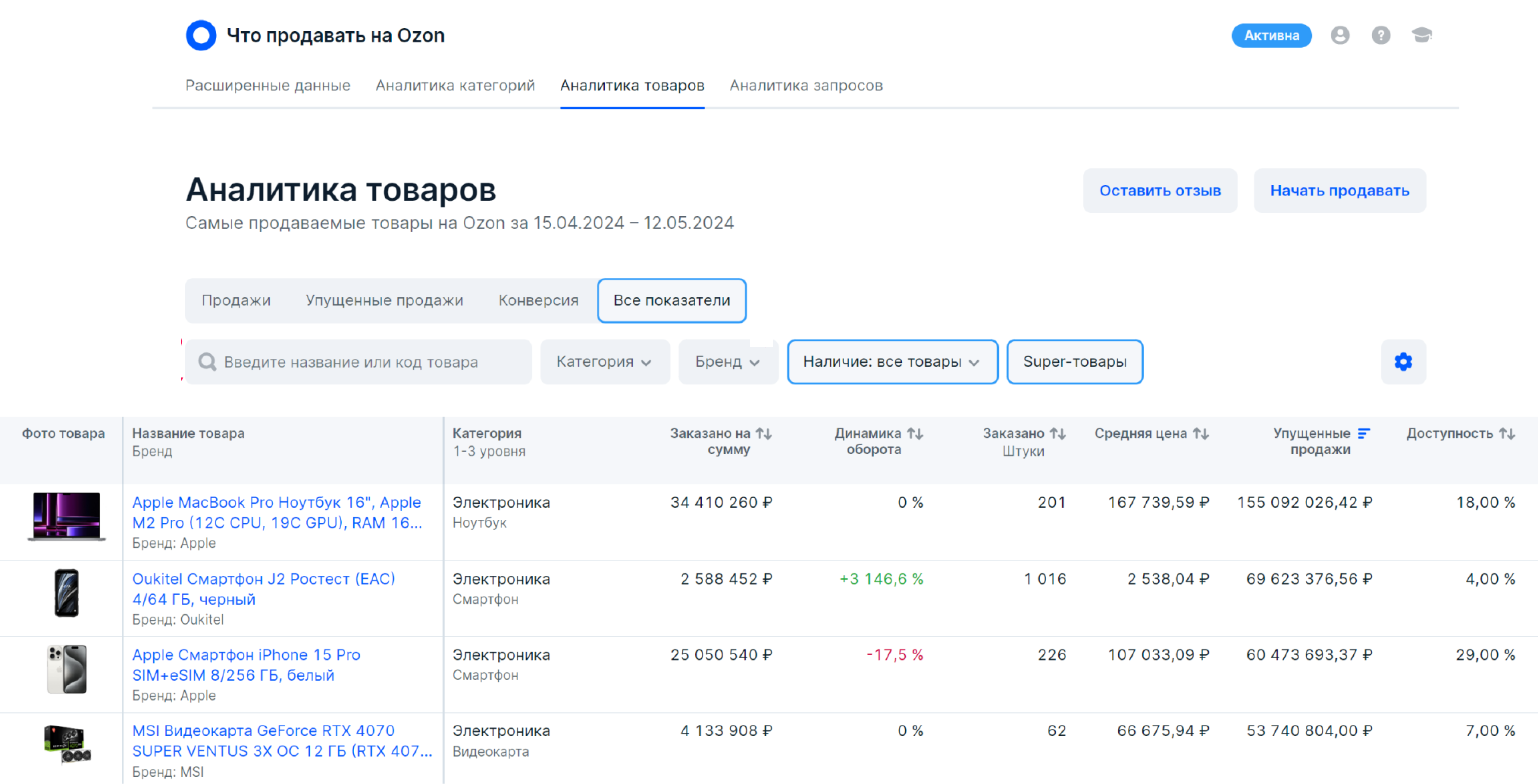 Для продавцов, которые уже зарегистрированы на Ozon, доступна расширенная аналитика.