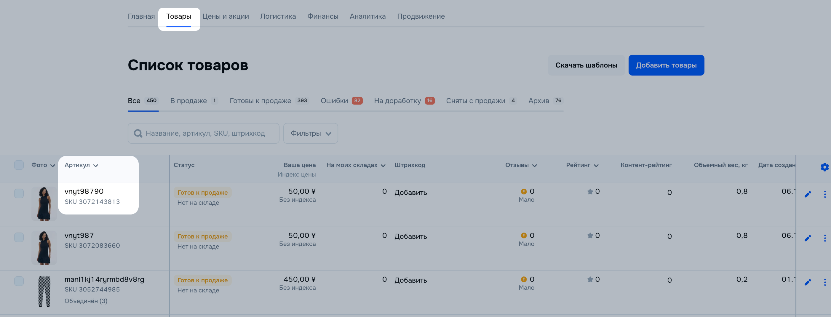 Чтобы посмотреть артикул в личном кабинете, воспользуйтесь одним из способов: