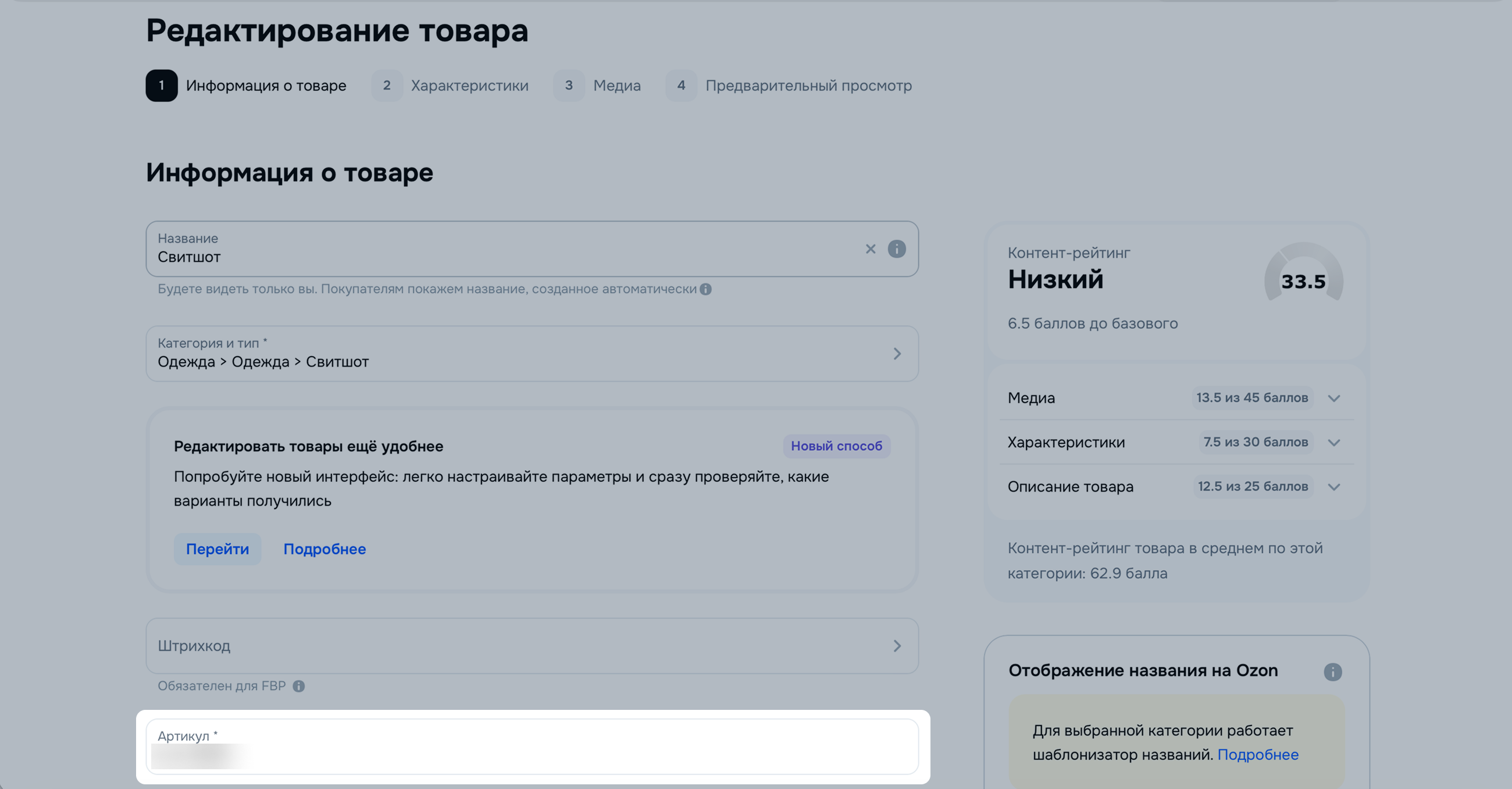 Редактировать артикул товара вы можете самостоятельно.