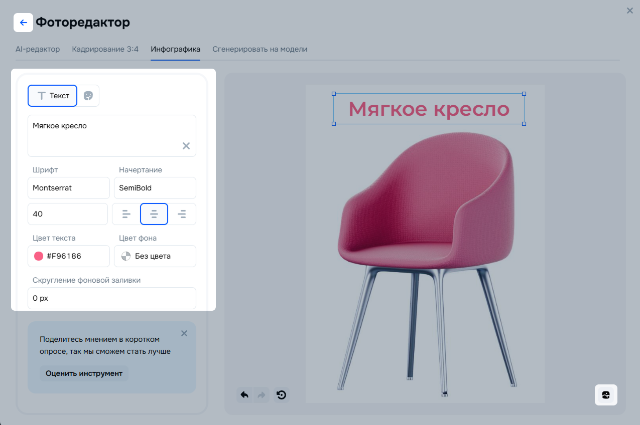 В фоторедакторе откройте вкладку Инфографика и загрузите фото. Вы можете: