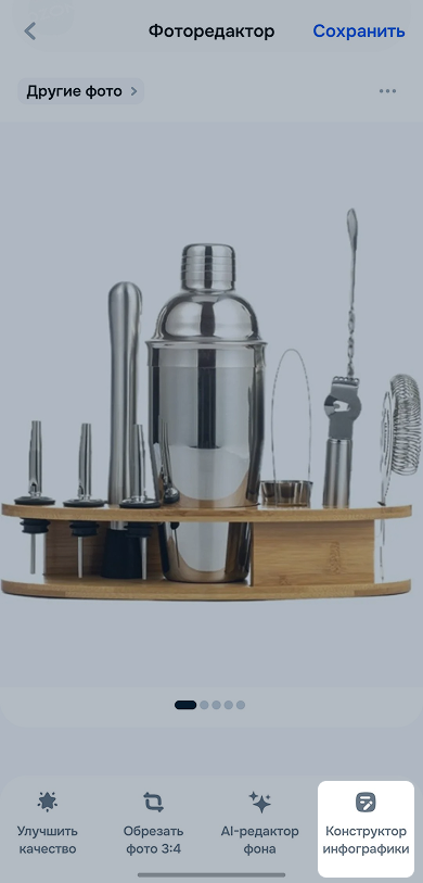 Чтобы выбрать изображение для редактирования из фото в карточке или загрузить новое, нажмите