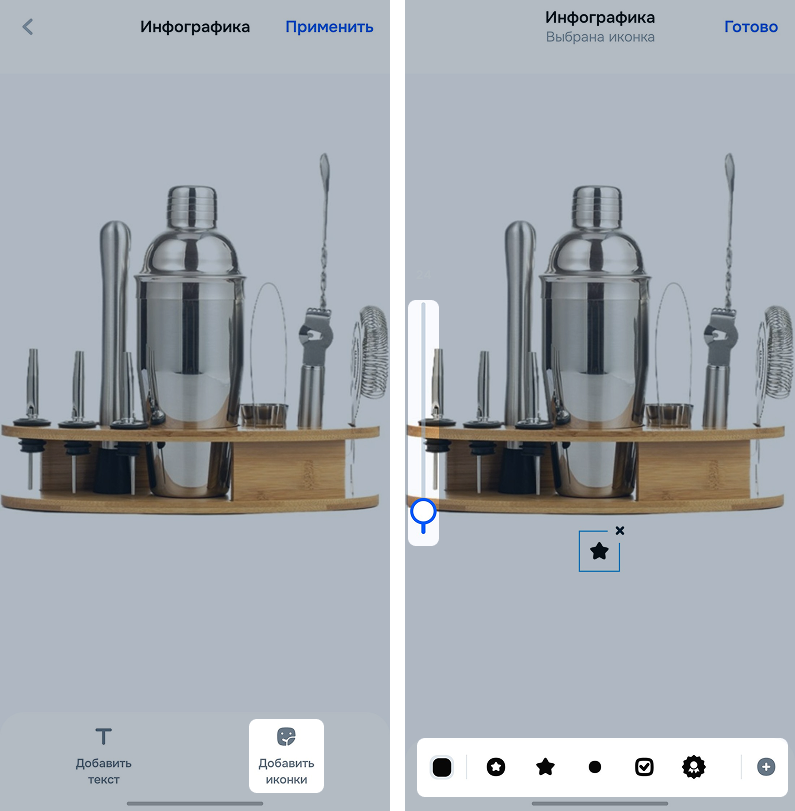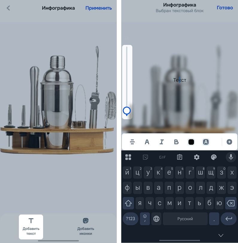 В фоторедакторе перейдите на вкладку Инфографика и загрузите фото. Вы можете: