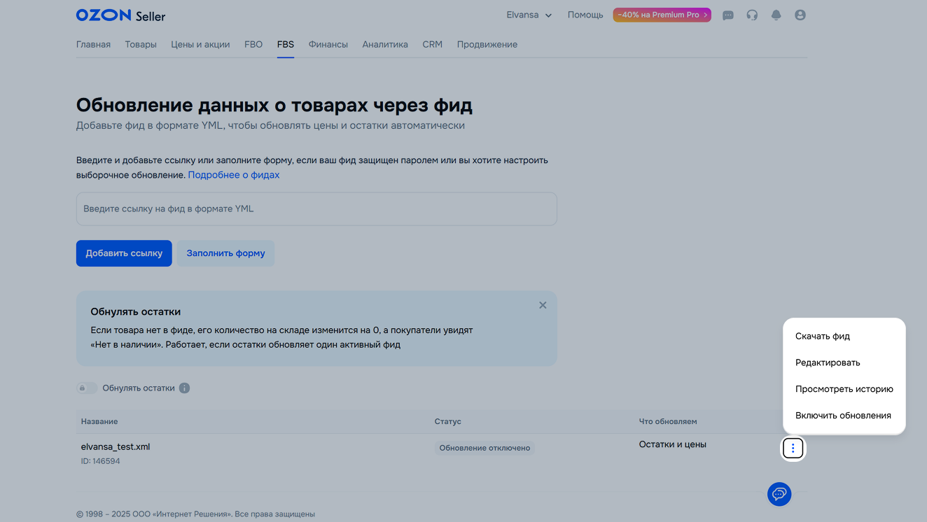 Фид – документ в формате YML с информацией о всех ваших товарах на сайте. Он поможет автоматизировать обновление остатков и цен. В отличие от XLS-шаблона, с помощью фида не получится заводить новые позиции.