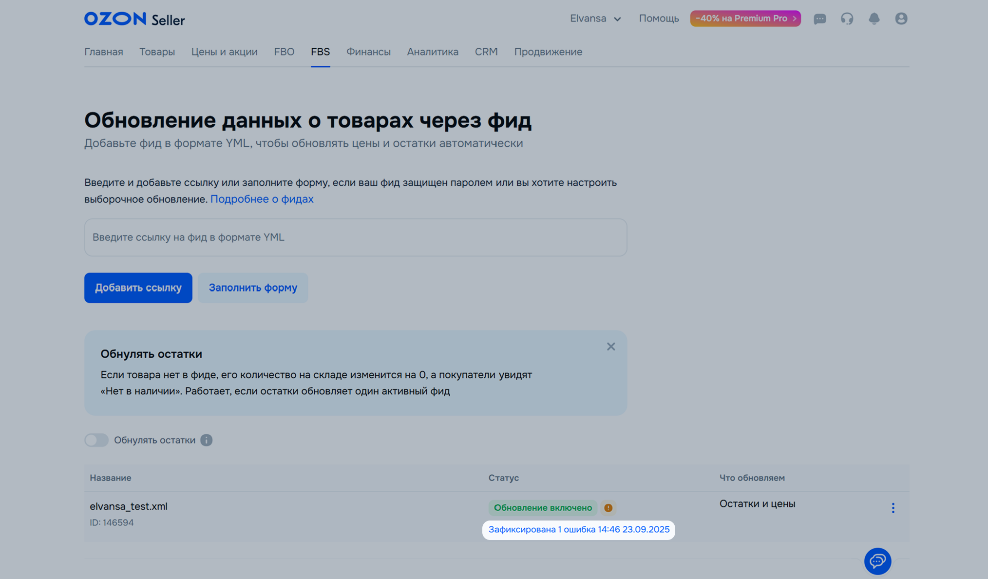 FBS → Обновить через фид — в списке загруженных фидов нажмите на количество ошибок.