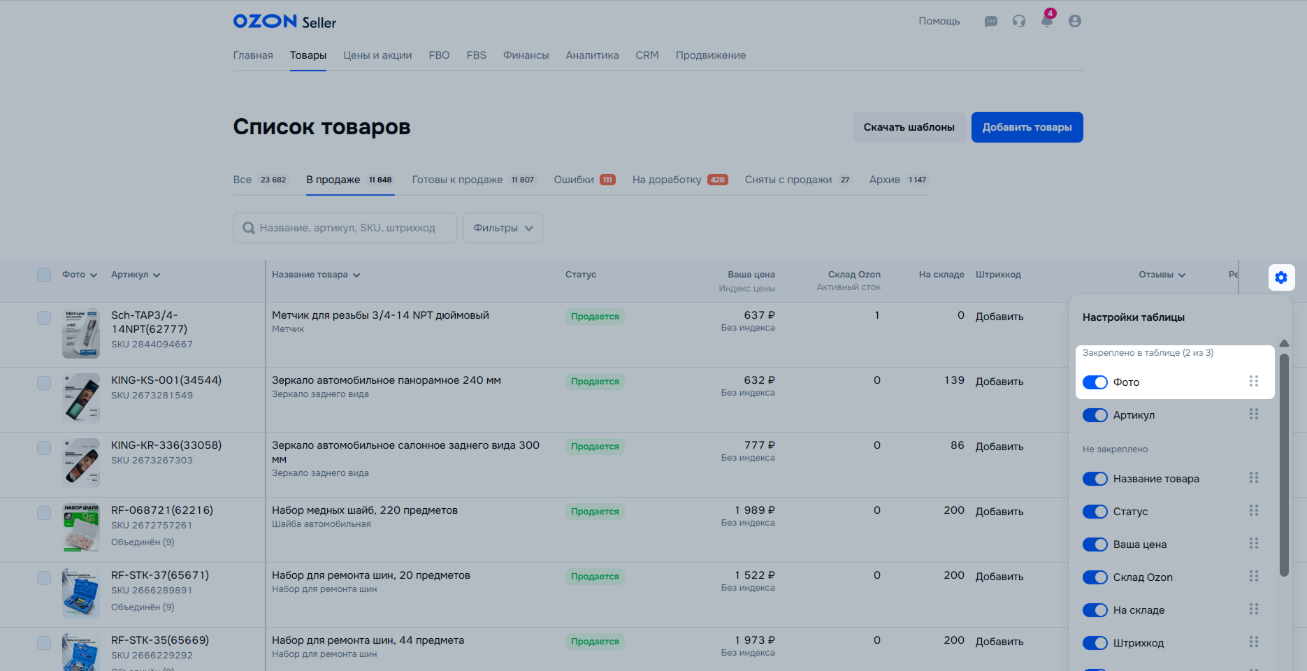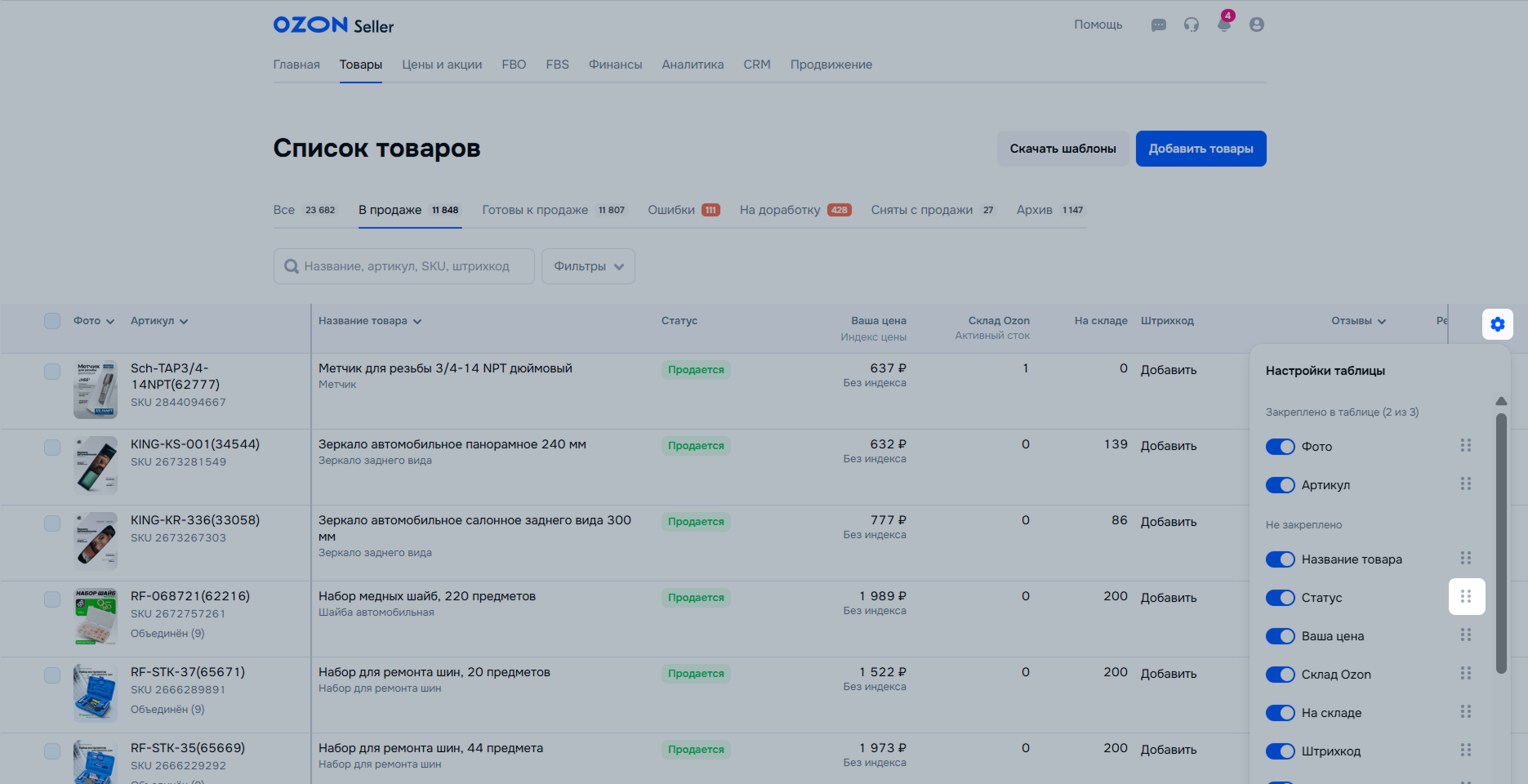 SKU — уникальный идентификатор товара в системе Ozon. У каждого товара есть SKU. Его можно найти в столбце «Артикул». SKU не отображается, если товар ещё не создан.