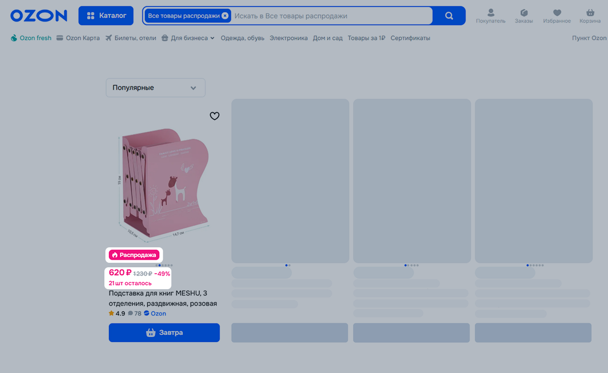 Товары, которые не участвуют в акциях, находятся ниже в поиске и каталоге — покупателям сложнее их найти.