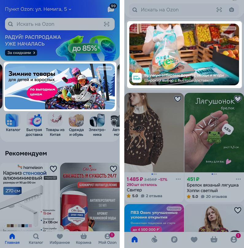 | Баннеры | 1000 рублей | За показы или за клики | Главная — в карусели баннеров под строкой поиска на главной странице. | 1. Главная и поиск: - под строкой поиска на главной странице; - результаты поиска и категории — между 8 и 9 карточками товаров. 2. Поиск и каталог — страницы категорий 1,2 и 3 уровня. Покупатели попадают на эти страницы из каталога или через поисковый запрос. |
