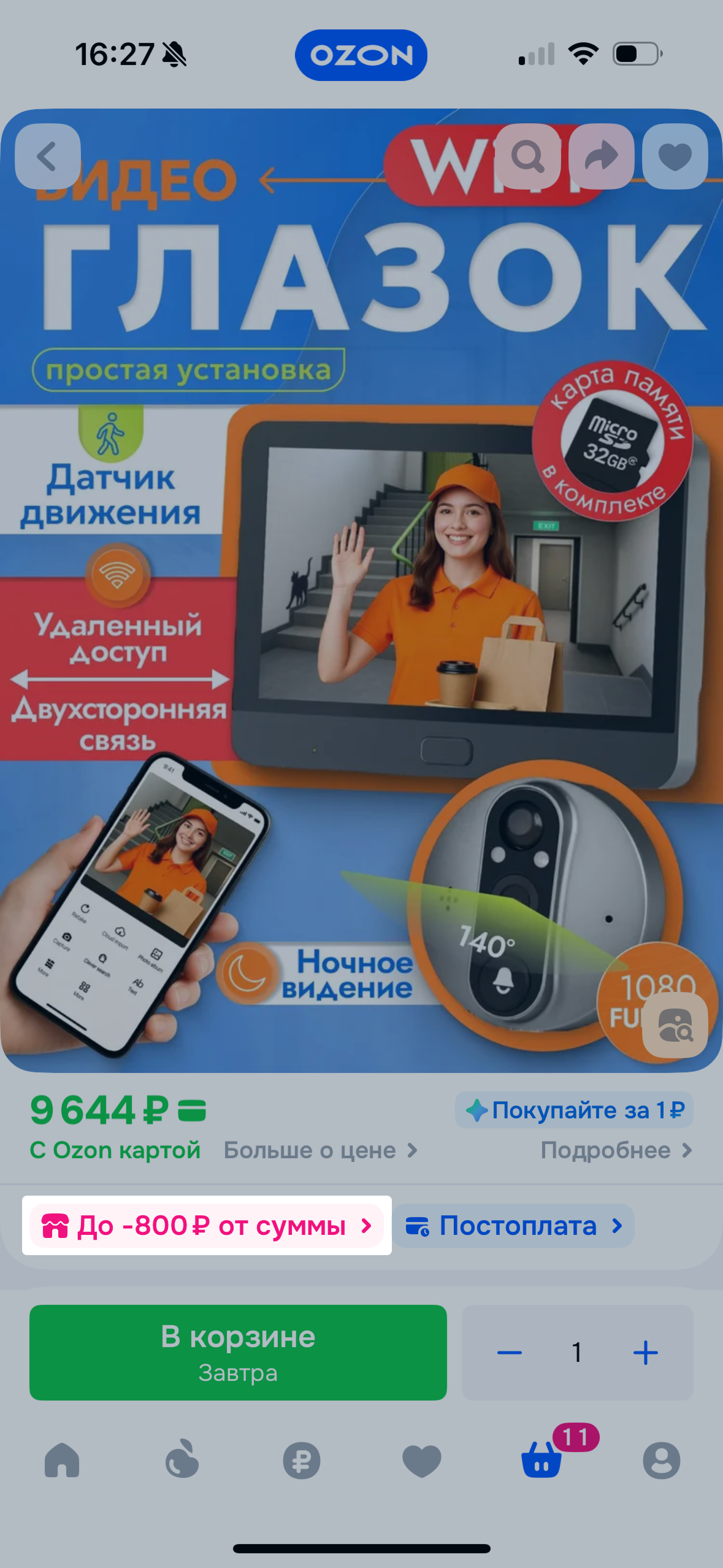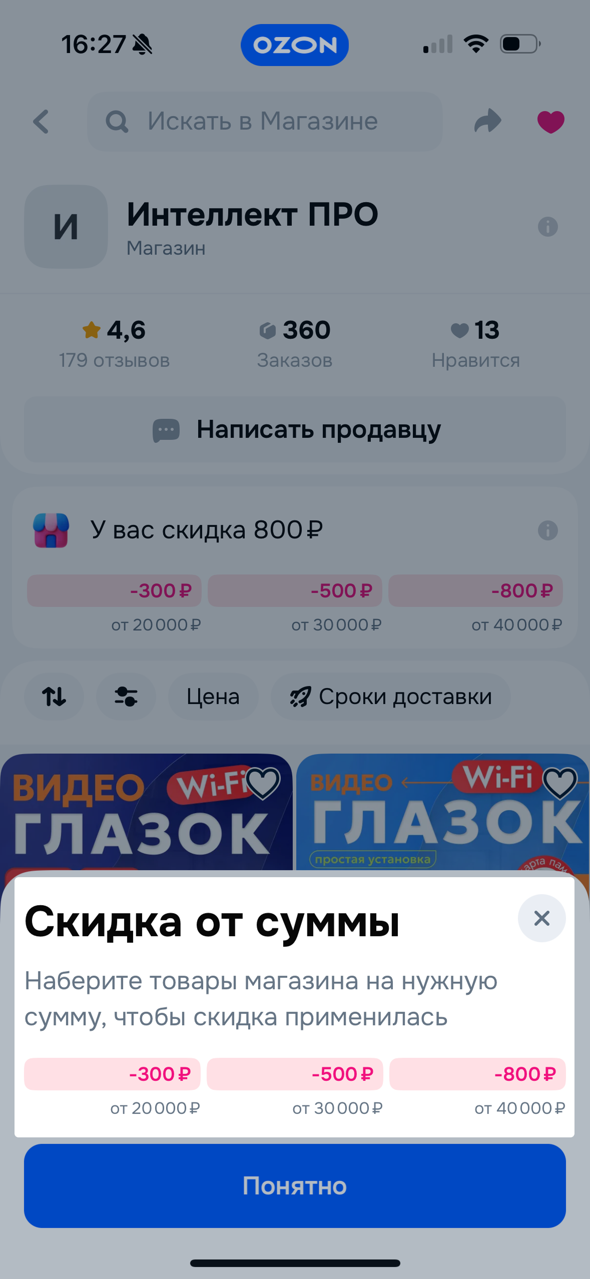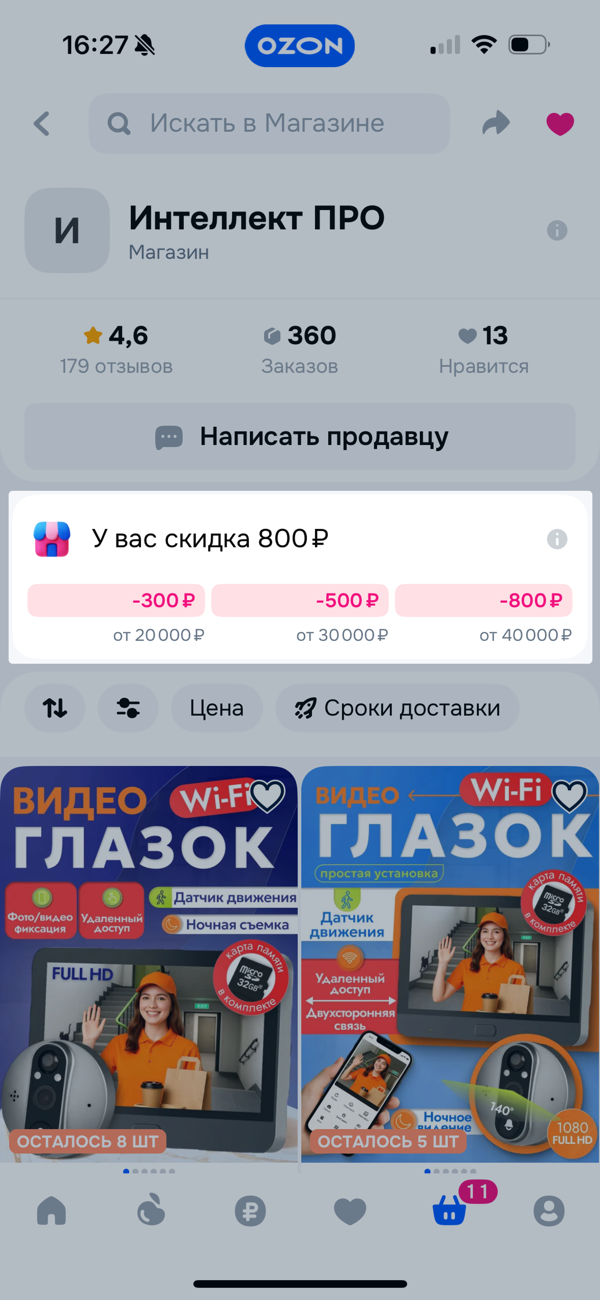 Показываем покупателю, какую скидку он получит при достижении нужной суммы заказа. Подсказка отображается в карточке товара и на странице магазина.