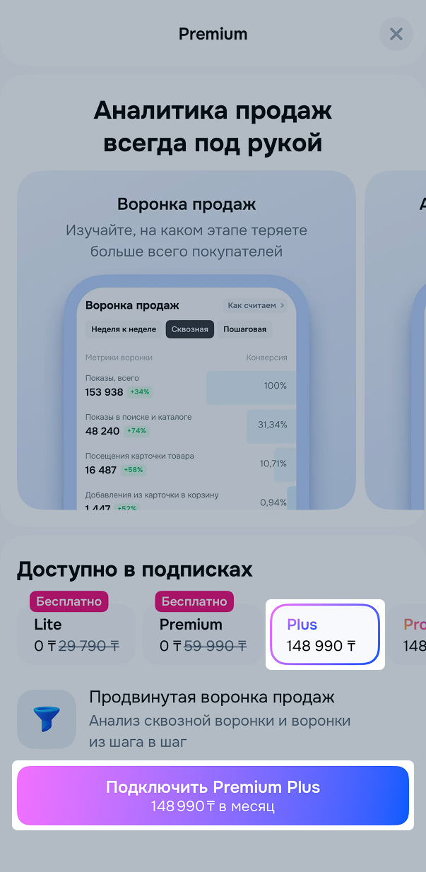 Premium Plus — подписка для продавцов, которые зарегистрированы на территории СНГ как ИП или юридические лица.