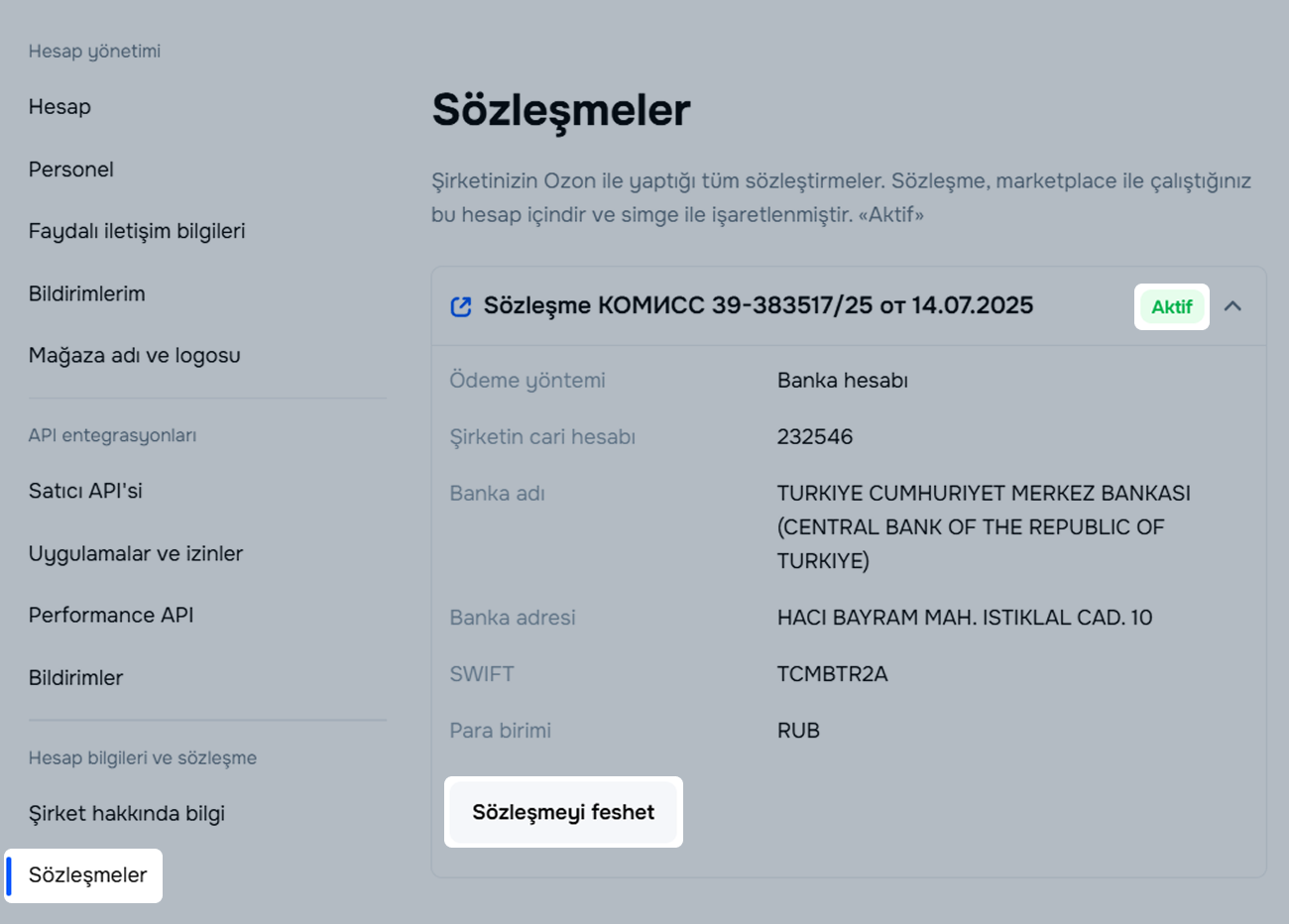 Aktif etiketine sahip sözleşmede Sözleşmeyi feshet’e tıklayın.