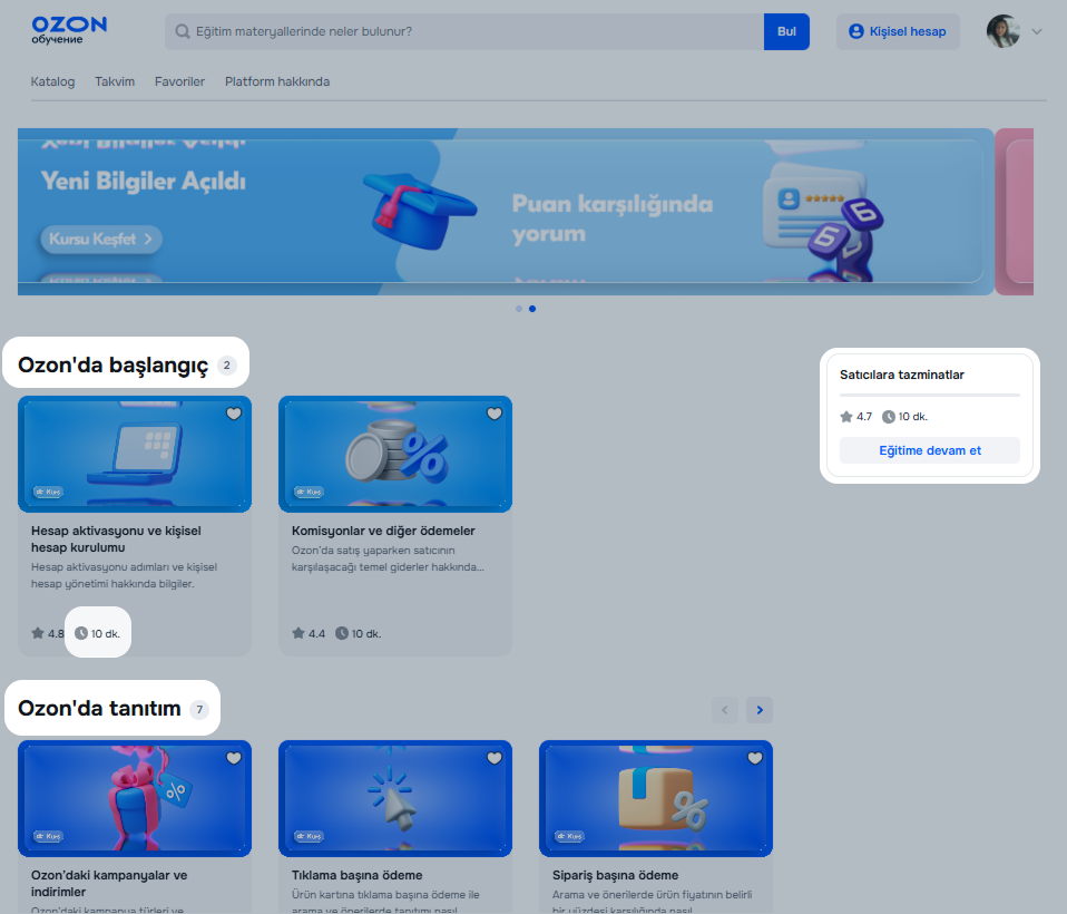 Çeşitli konulardaki kursları: işe başlama, ürün kartlarıyla çalışma, lojistik, tanıtım ve diğerleri;