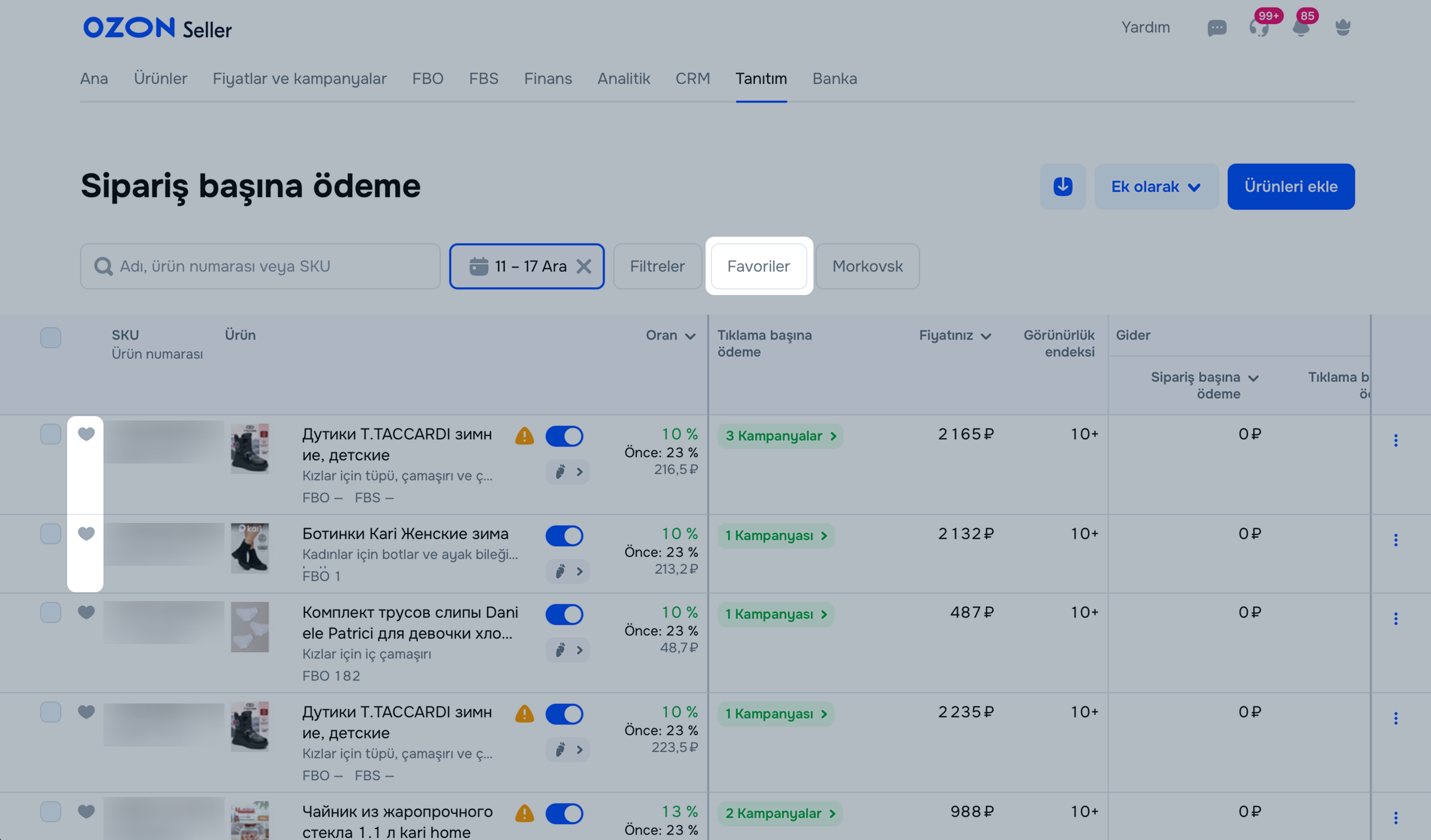 simgesine tıklayın. Bu tür ürünlerin listesini görmek için Favoriler’e tıklayın.