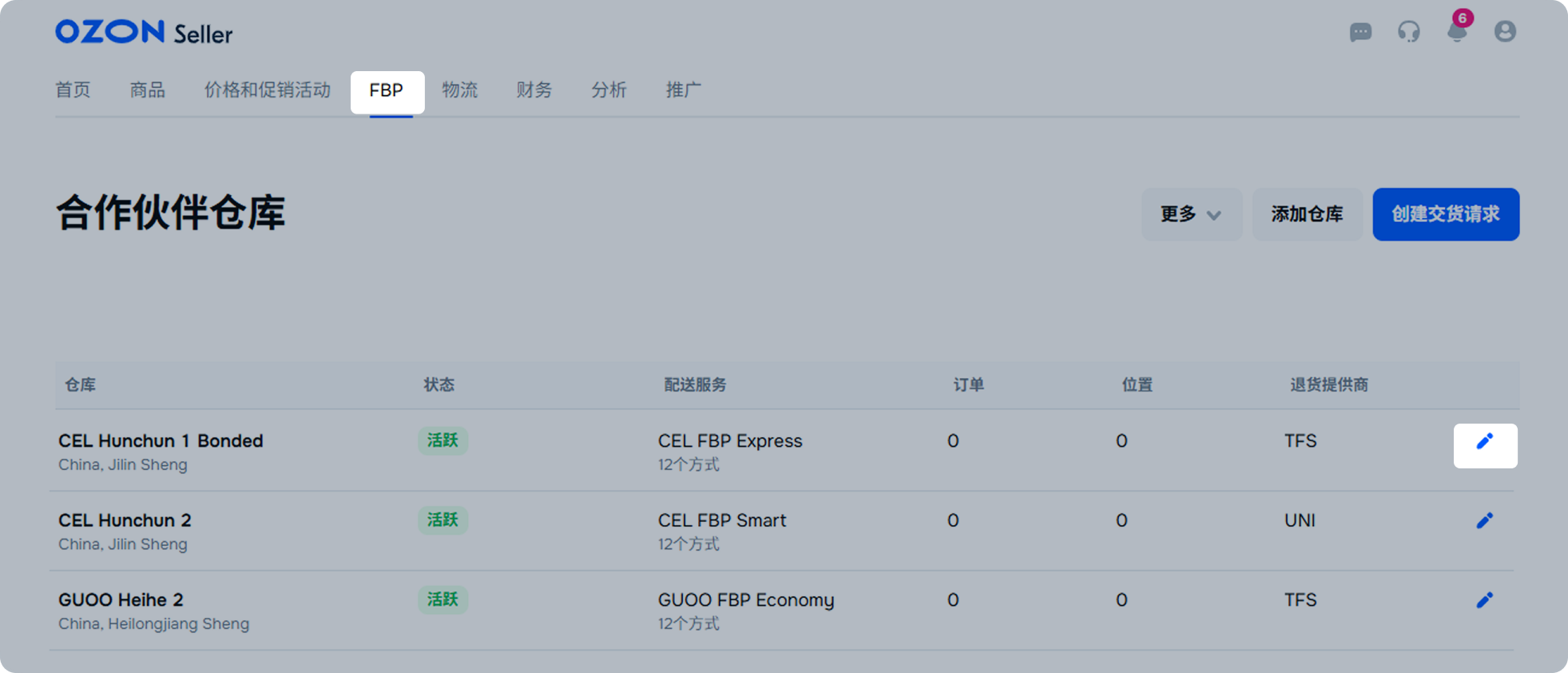 2. FBP → 仓库 标签页,点击仓库旁边的