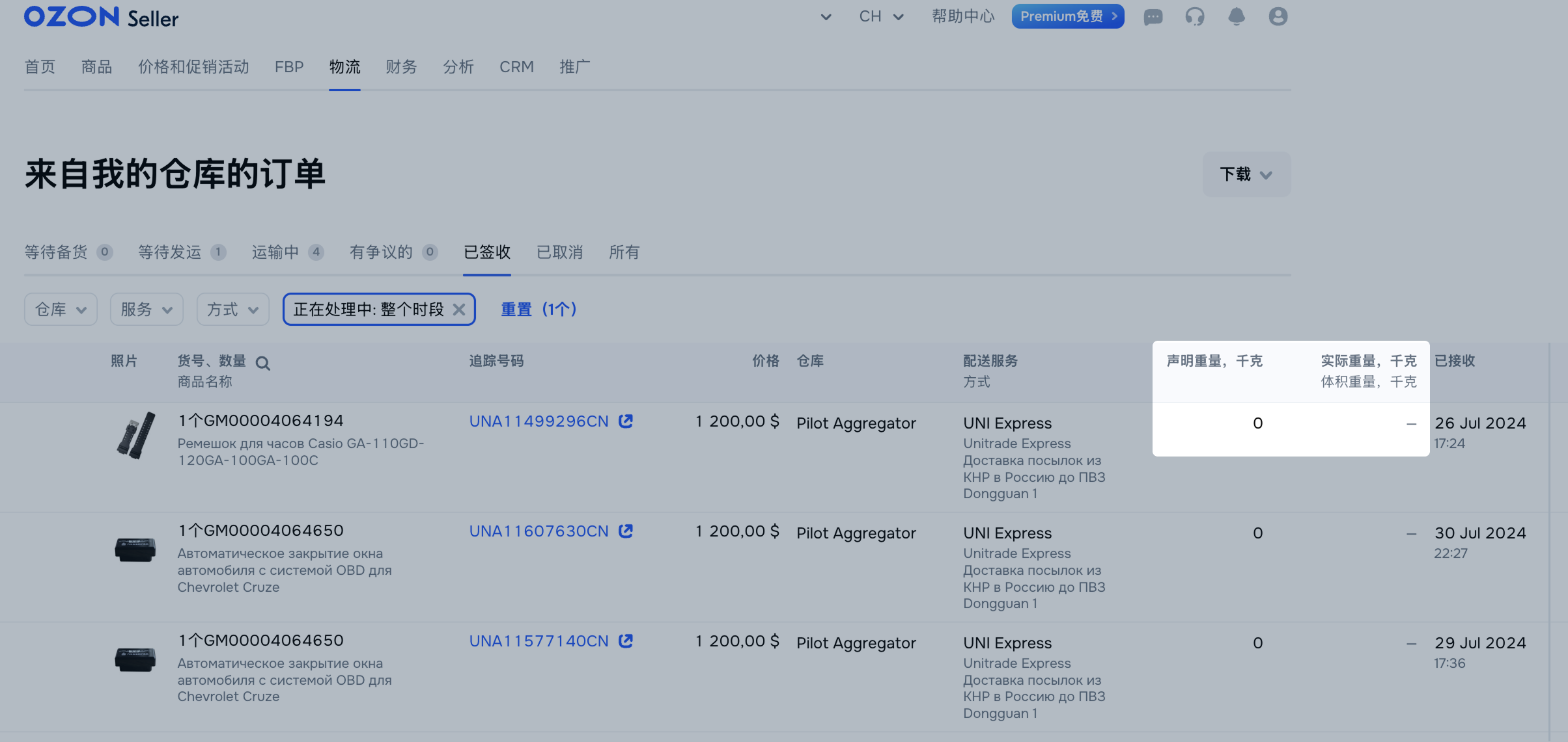 若您的商品体积和重量特征不正确,Ozon可以取消订单货件。