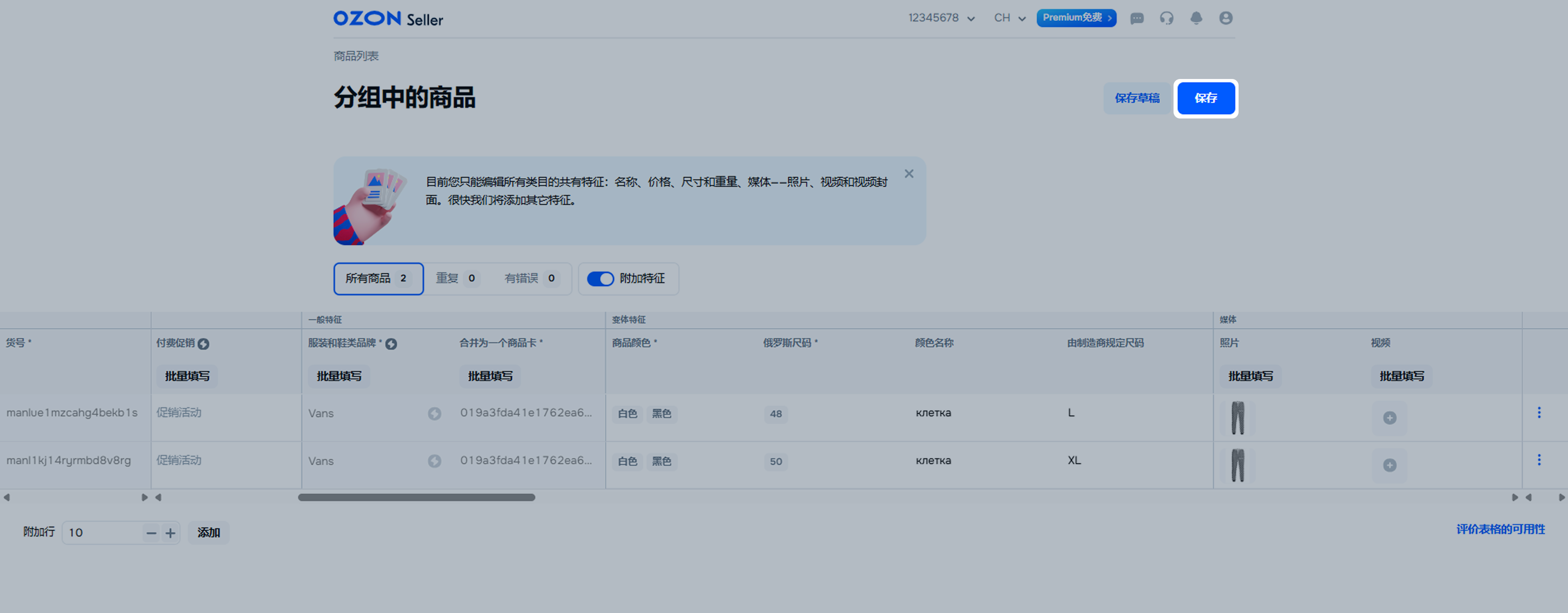 如果您的品类繁多,那么您可以将同一类目中的所有商品添加至同一文件。为此请下载并填写XLS模板。