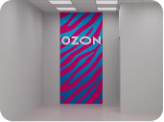 3500 × 1000 | Обои «Зебра» и логотип Ozon размещаются на стене позади стола выдачи. |