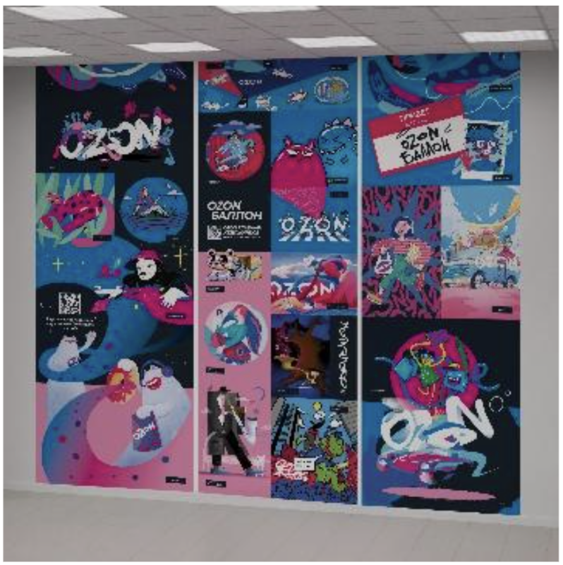 1500 × 2500 | Панно в стиле «Ozon Ballon» размещается на свободном участке стены в клиентской зоне. |