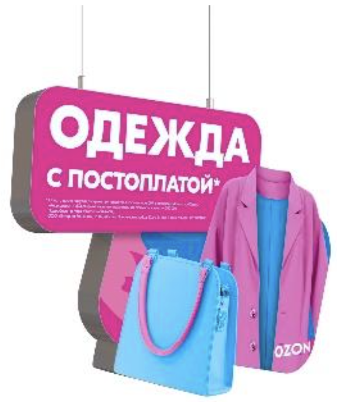 | 14. | Световой короб «Одежда с постоплатой» Ozon вертикальный. Для Владельцев ПВЗ, заключивших Договор по 17.03.2025 г. (включительно), данное условие применяется с 17.04.2025 г. |