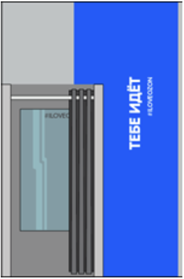169 × 155 | Размещается на свободной от крючков стенке в каждой примерочной. От края стены до начала стикера должно быть 300 мм. От пола до верхней части стикера – 1650 мм. |