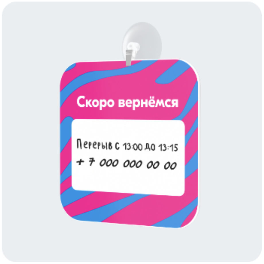 150 × 150 | Размещается на входной двери в случае короткого перерыва в Пункте выдачи. |